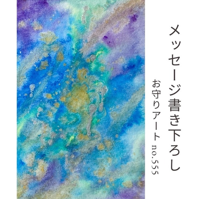 今のあなたへ届いている メッセージの書き下ろし、いたします。 *・゜゚・*:.。..。.:*・.。.:*・゜゚・* こちらのお品は ・手書きのメッセージ ・お守りアート(no.555) の2点をお届けします。 *・゜゚・*:.。..。.:*・.。.:*・゜゚・* ①今のあなたへ届いているメッセージ ポストカード1枚に、手書きのメッセージでお届けします。 ②お守りアート ポストカードサイズのトルション紙に、アクリル絵具で描きました。 光のエネルギーがぎゅっと詰まっています。 無意識に入っている力を緩め、本来の自分を生きるサポートをしてくれます。 額装無し サイズ :100㎜ × 148㎜ *・゜゚・*:.。..。.:*・.。.:*・゜゚・* ※贈り物でご注文の方へ ご本人様以外のご注文の場合、 【贈り先の方のお名前】を教えていただけますと その方に届いているメッセージを 書き下ろしさせていただきます *・゜゚・*:.。..。.:*・.。.:*・゜゚・* 【 お守りアートの裏面 】 直筆でサイン、作品番号を記載しております 【 お守りアートの画材 】 トルション水彩紙、アクリル絵具、素粒水 【 お守りアートの注意 】 できるだけ、実物に近い写真を使っておりますが 媒体の画面によっては、色に違いがある場合がございます 1点物の原画作品のため、 発送後のキャンセルや、お客様のご都合によるご返品はお受けしておりません *・゜゚・*:.。..。.:*・.。.:*・゜゚・* ◆他のお守りアート一覧 https://noguchikumi.thebase.in/categories/5168255 *・゜゚・*:.。..。.:*・.。.:*・゜゚・*