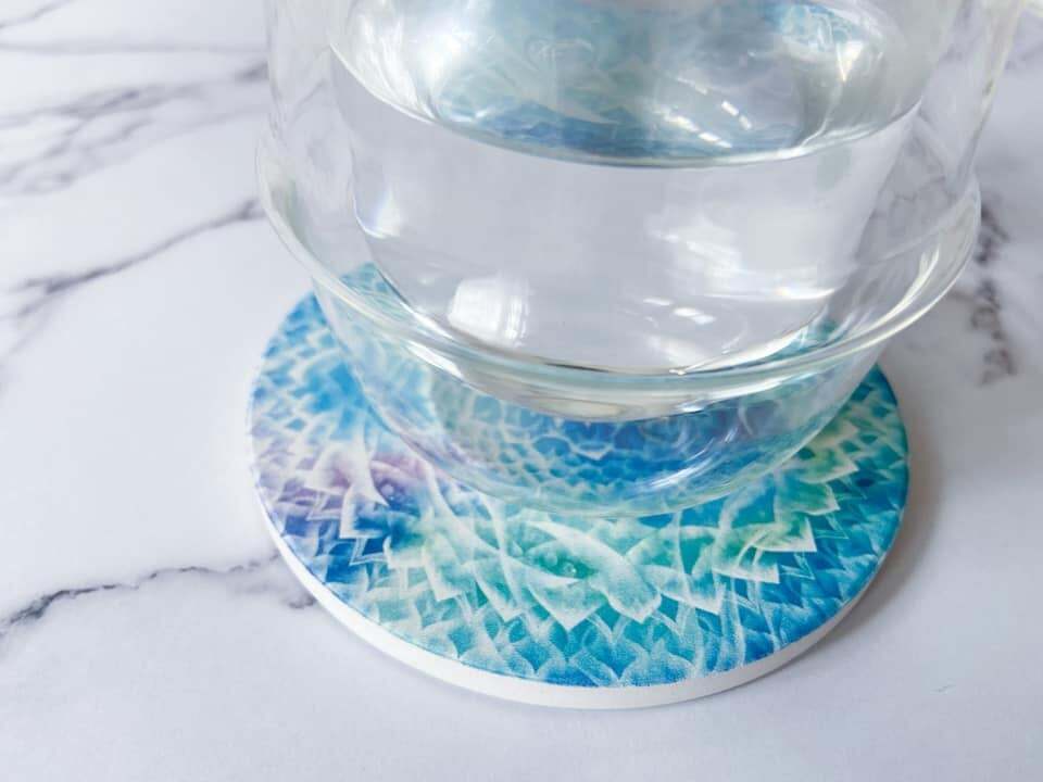 ざらざらとした陶器のような質感の、白雲石入りコースターです。