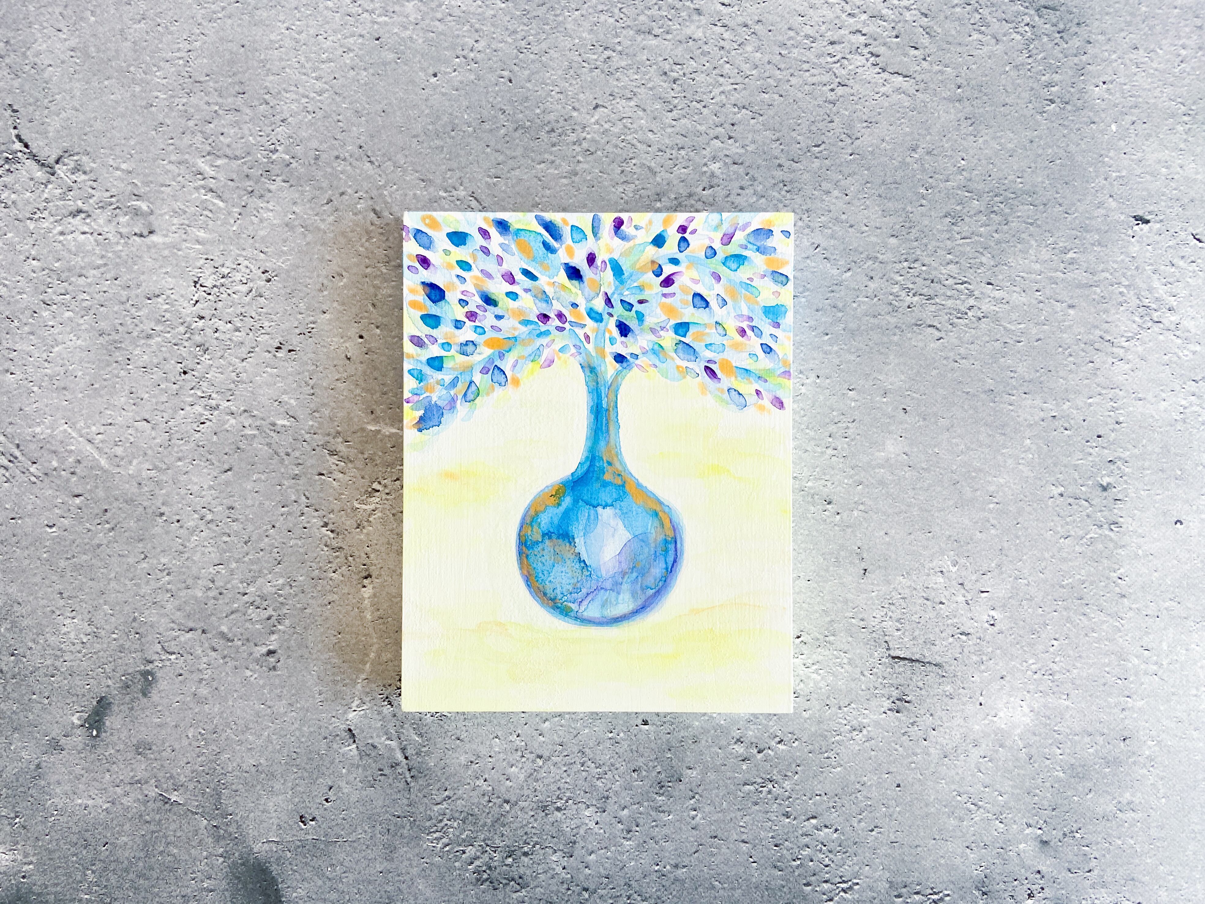 木製パネル、アクリル絵具、素粒水