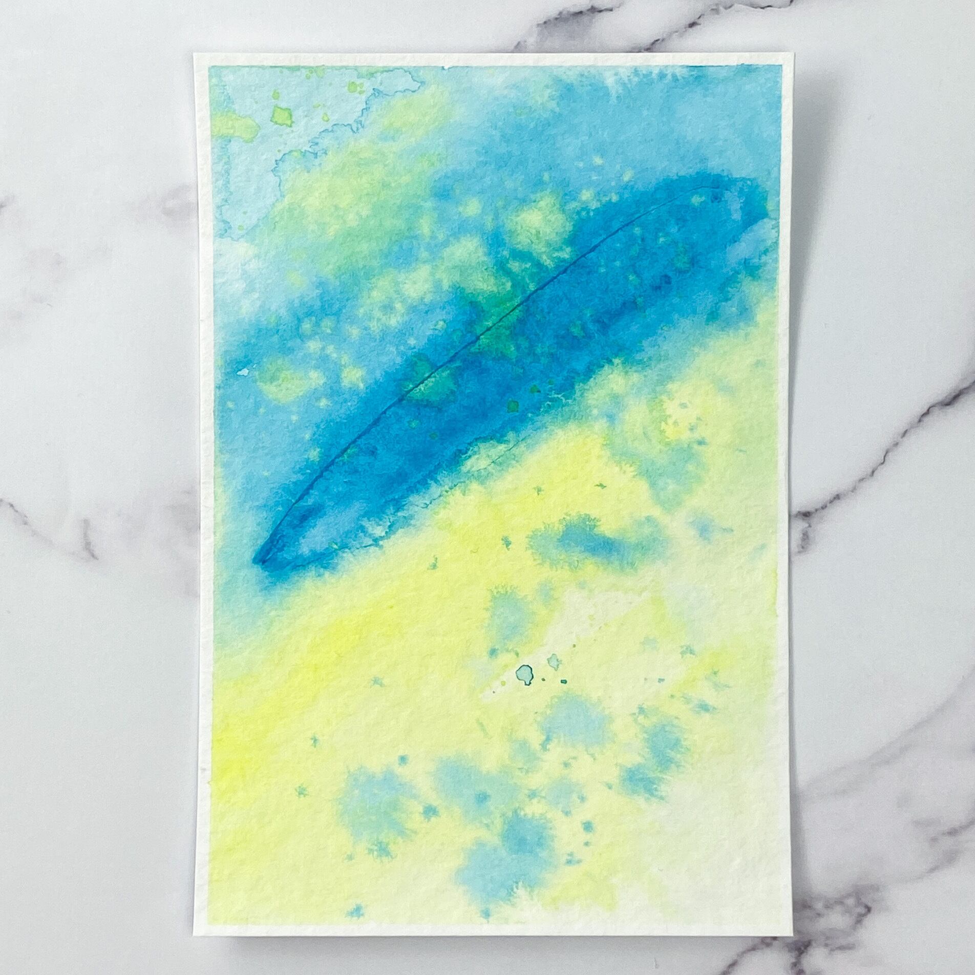 ポストカードサイズのトルション紙に、アクリル絵具で描きました。