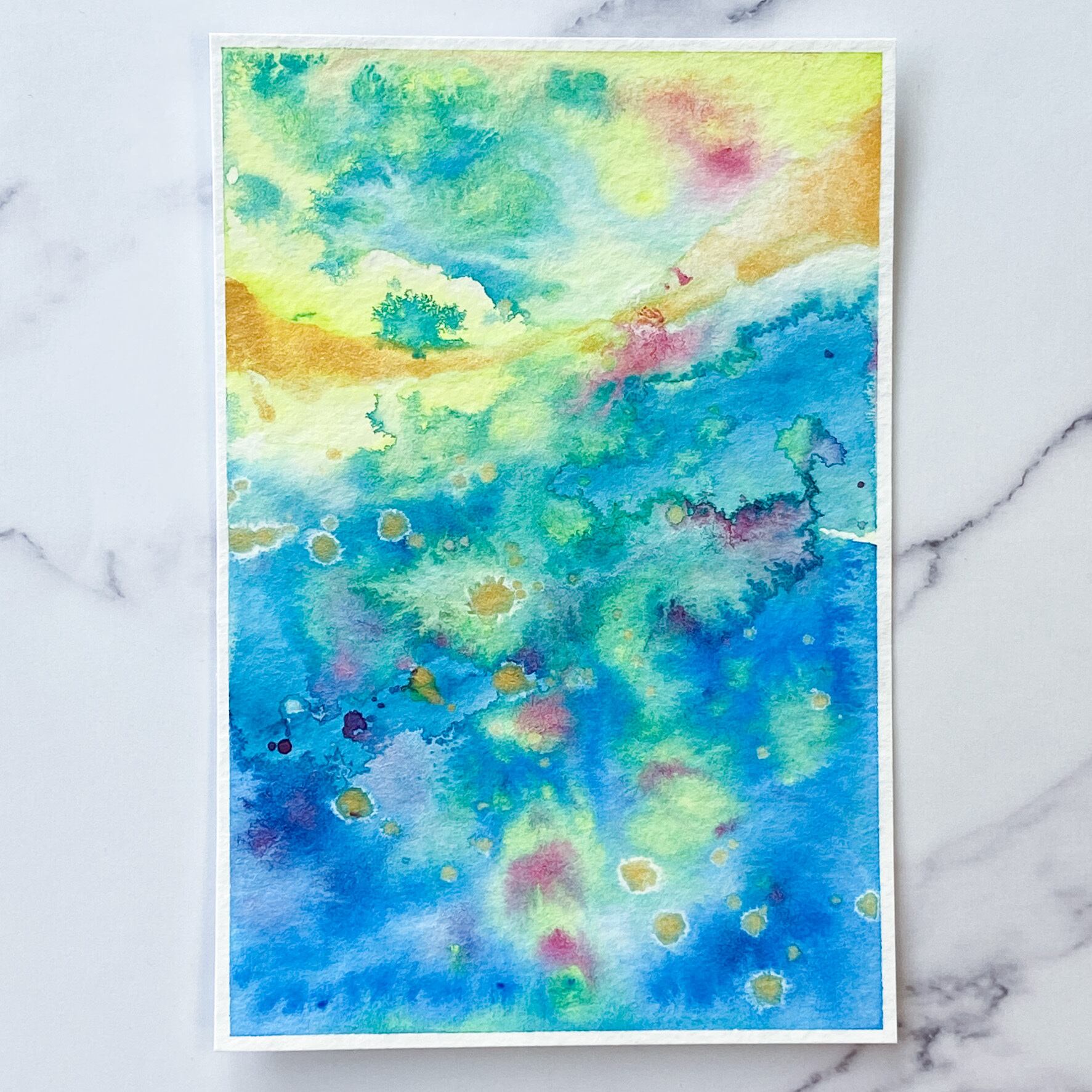 ポストカードサイズのトルション紙に、アクリル絵具で描きました。