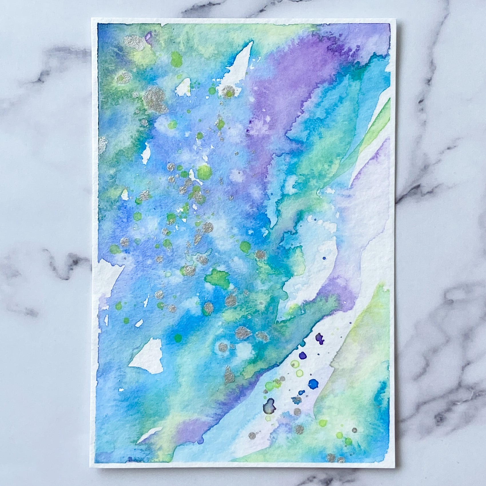 ポストカードサイズのトルション紙に、アクリル絵具で描きました。