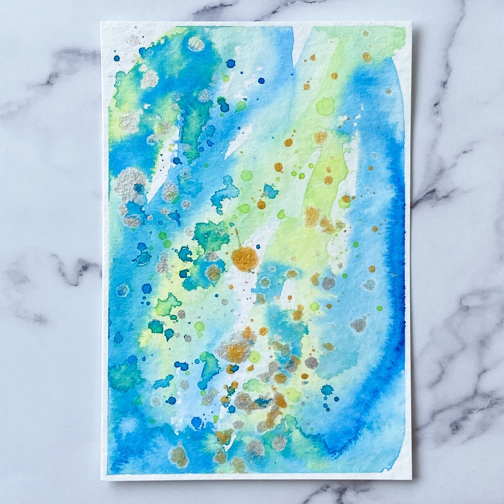 ポストカードサイズのトルション紙に、アクリル絵具で描きました。