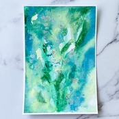 ポストカードサイズのトルション紙に、アクリル絵具で描きました。