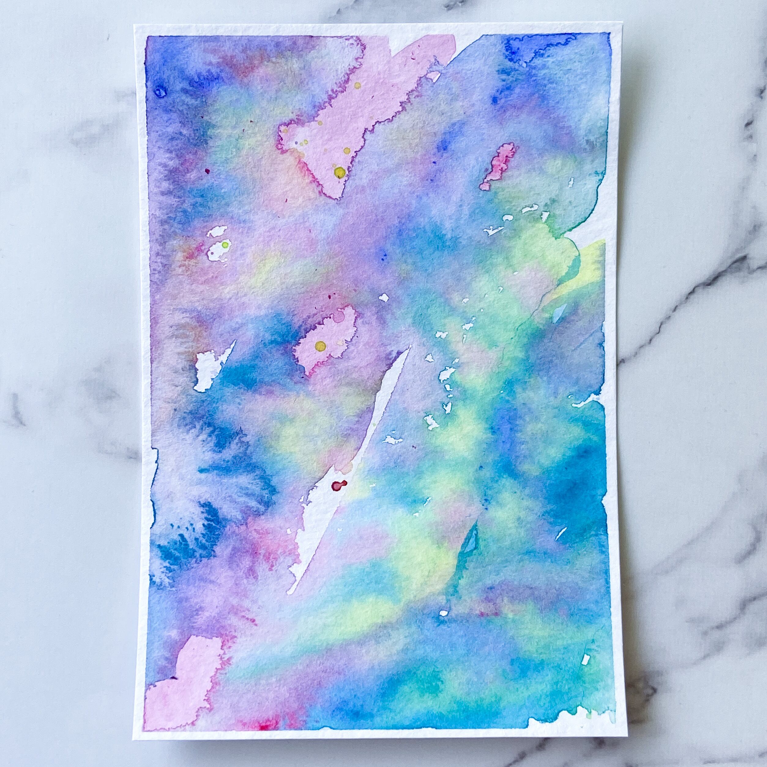 ポストカードサイズのトルション紙に、アクリル絵具で描きました。