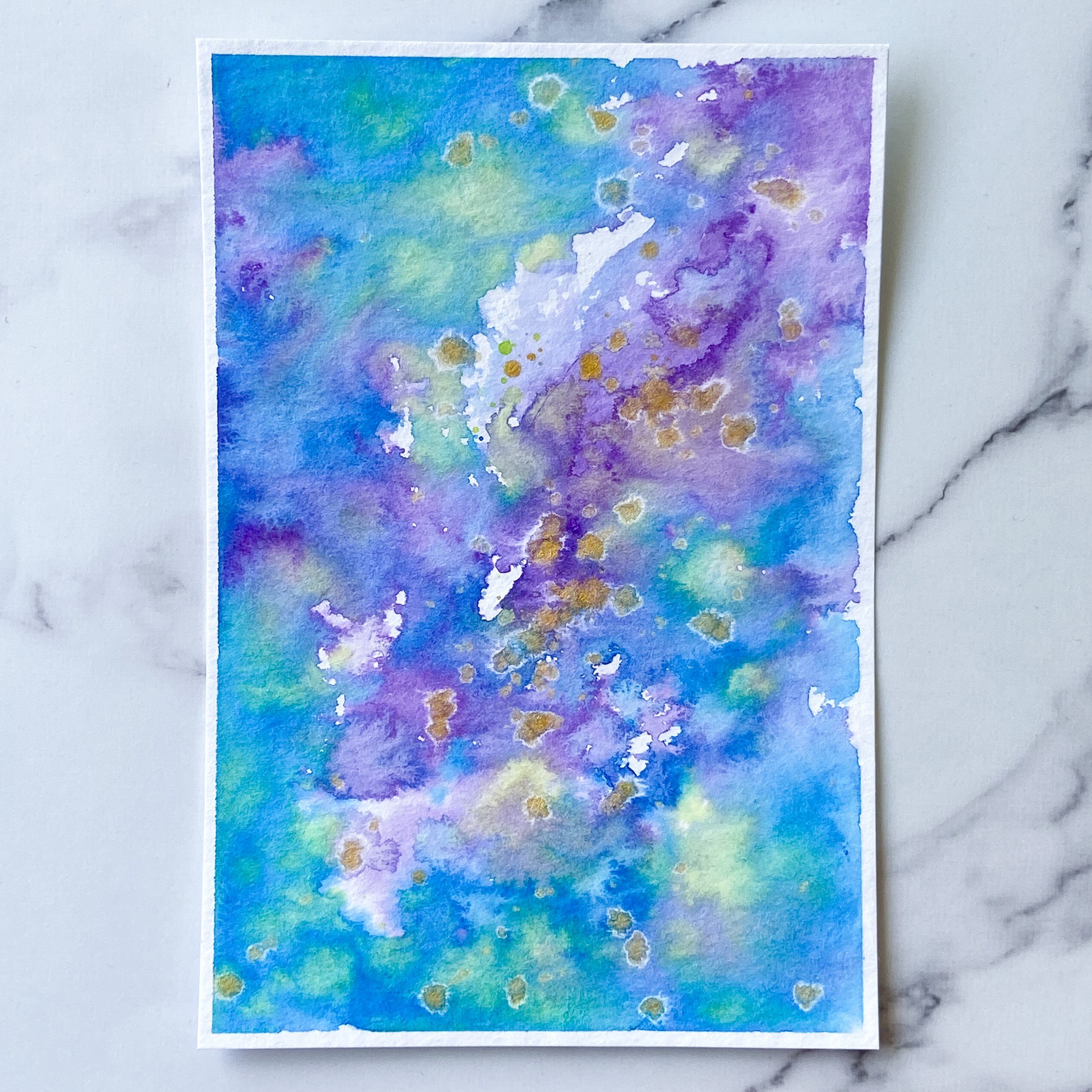 ポストカードサイズのトルション紙に、アクリル絵具で描きました。