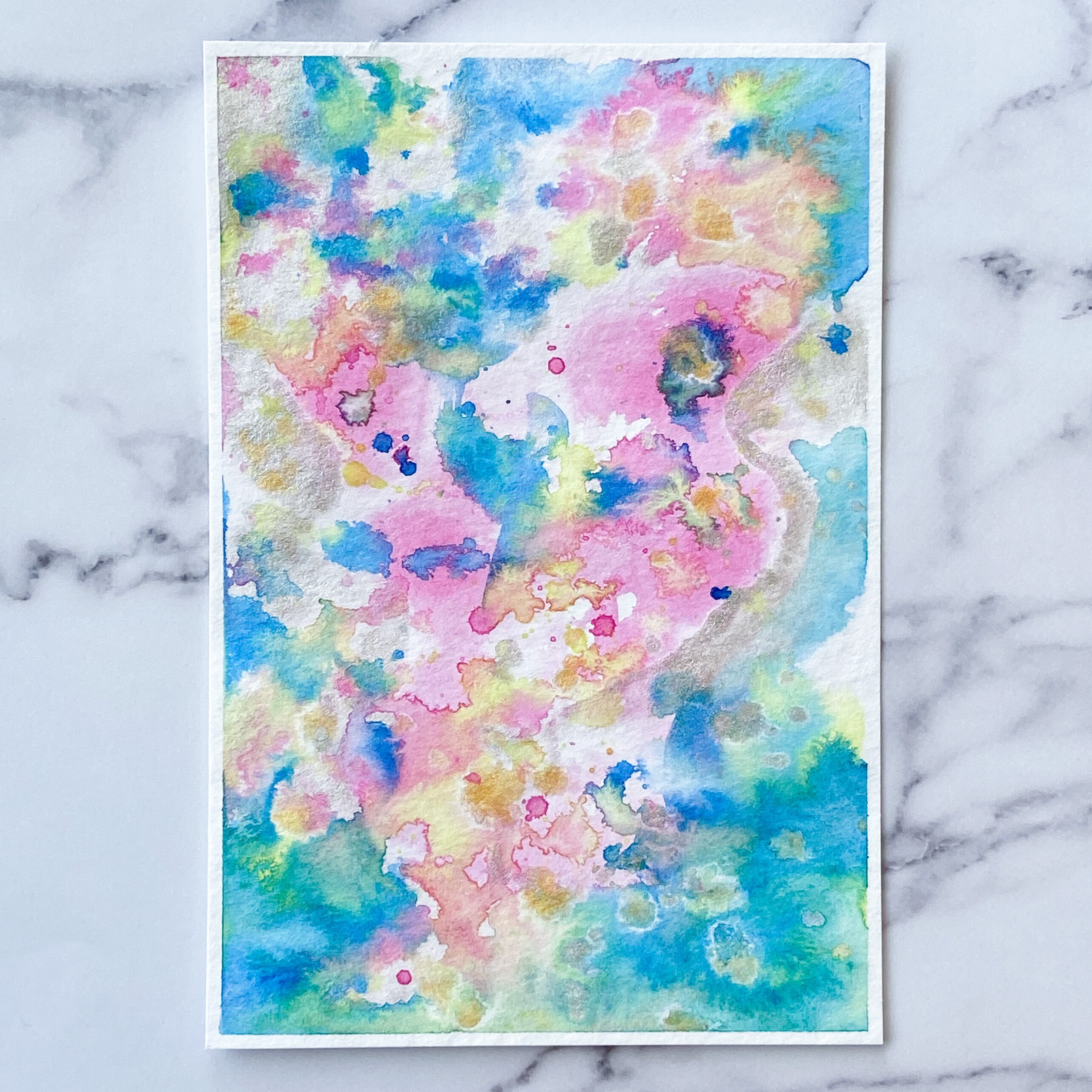 ポストカードサイズのトルション紙に、アクリル絵具で描きました。
