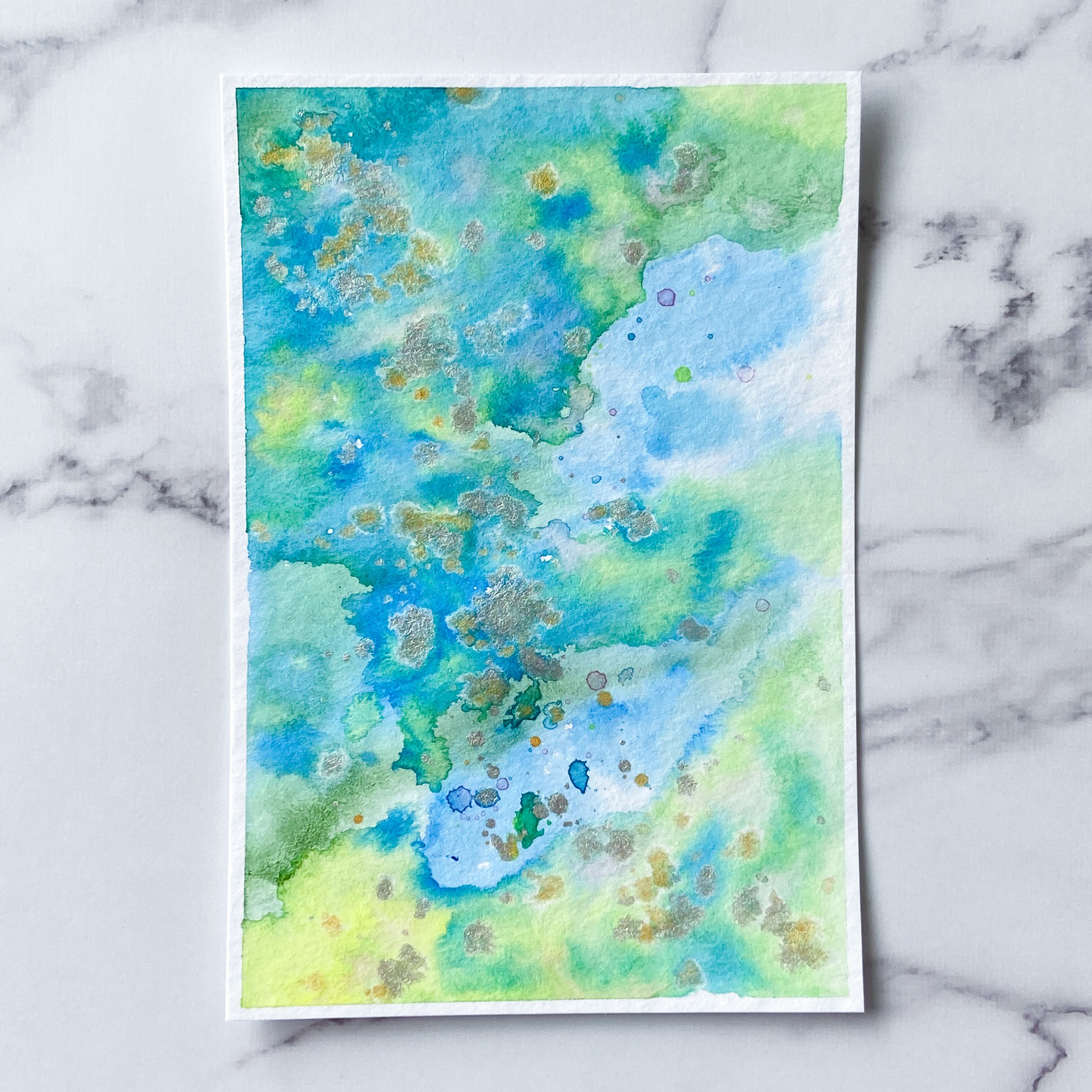 ポストカードサイズのトルション紙に、アクリル絵具で描きました。