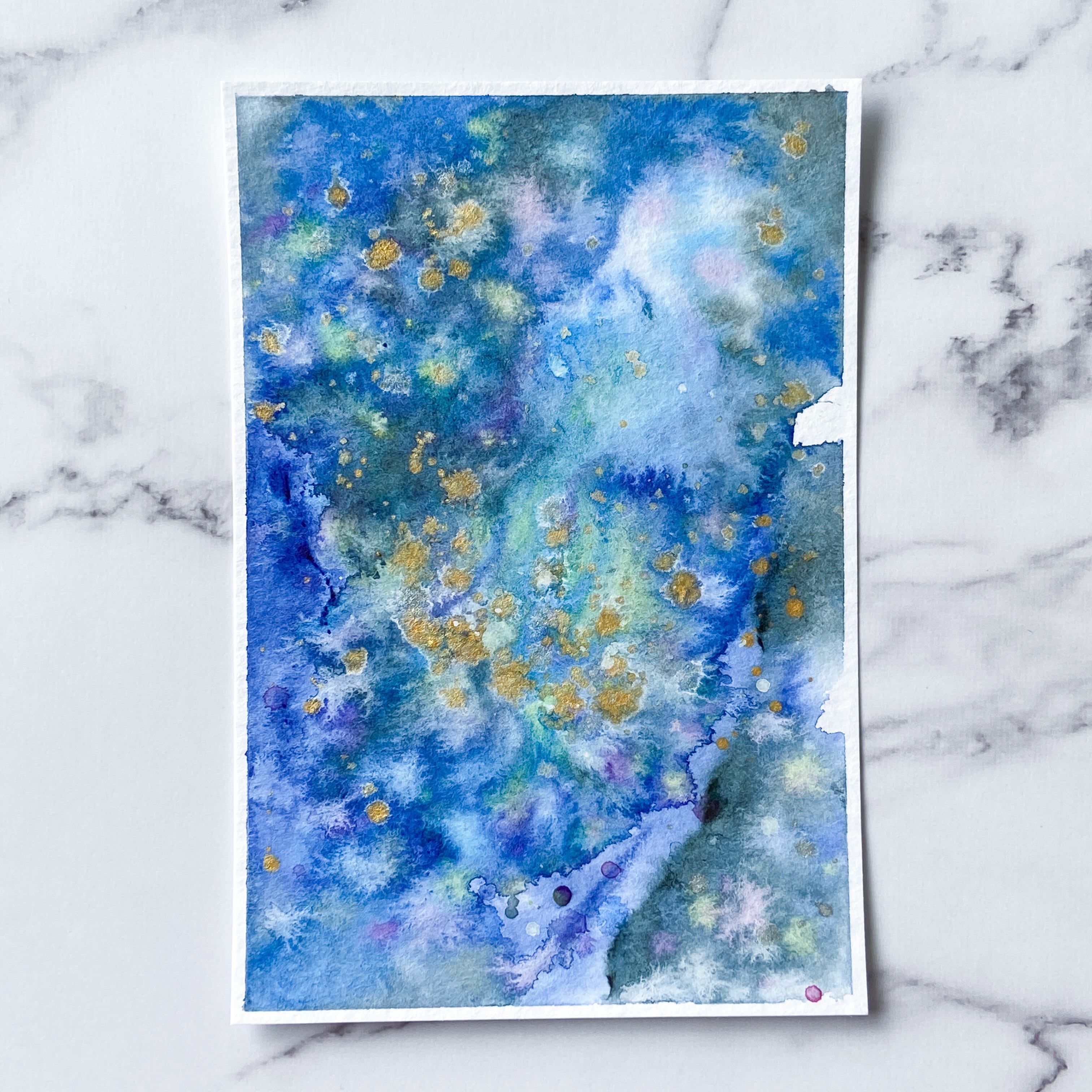 ポストカードサイズのトルション紙に、アクリル絵具で描きました。