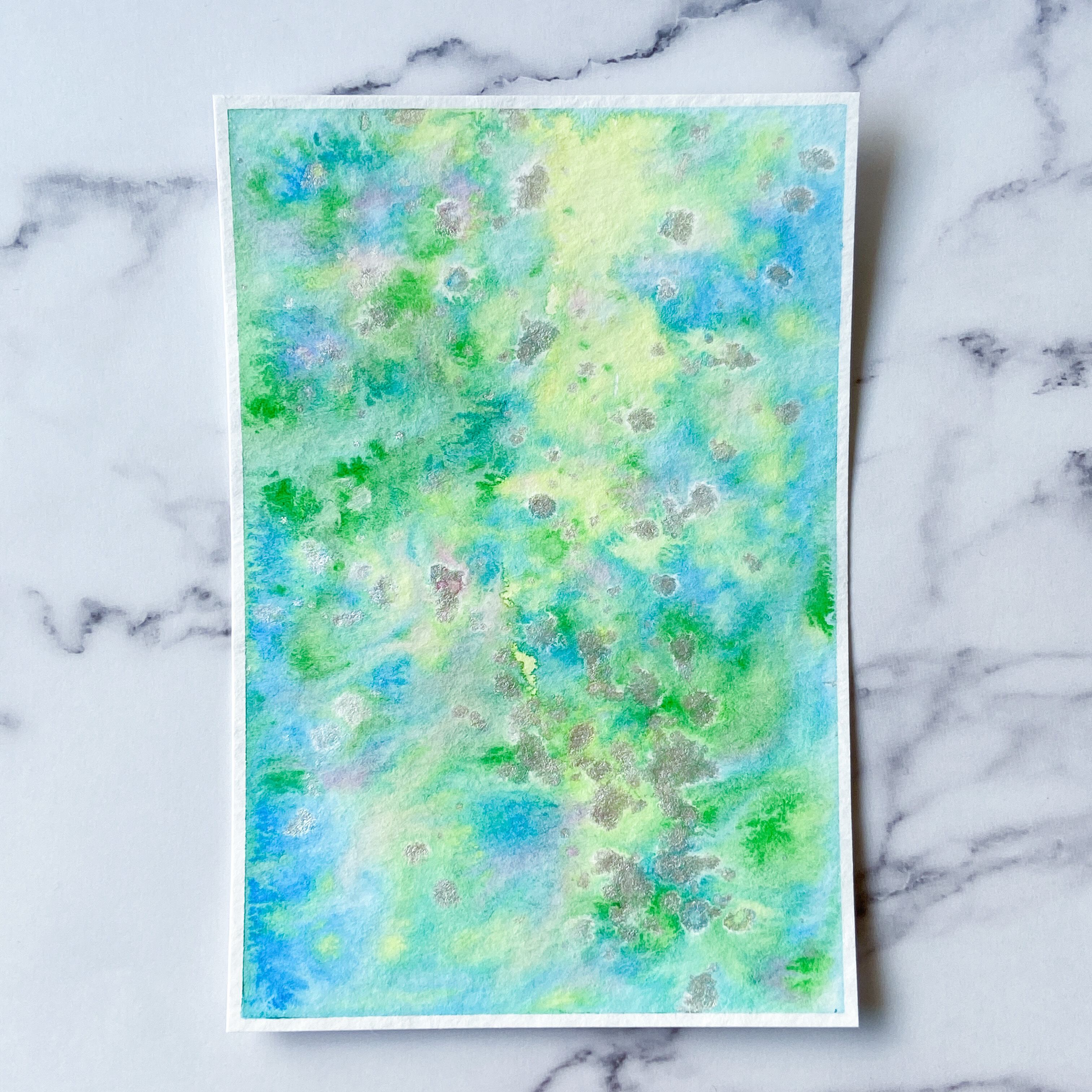 ポストカードサイズのトルション紙に、アクリル絵具で描きました。