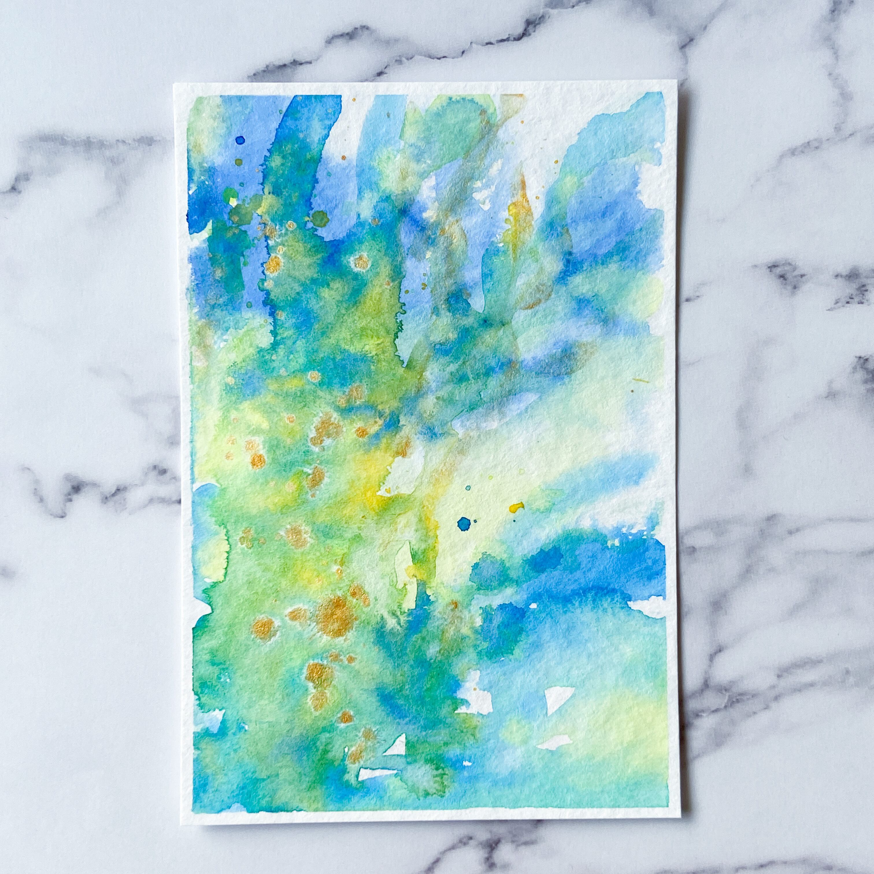 ポストカードサイズのトルション紙に、アクリル絵具で描きました。