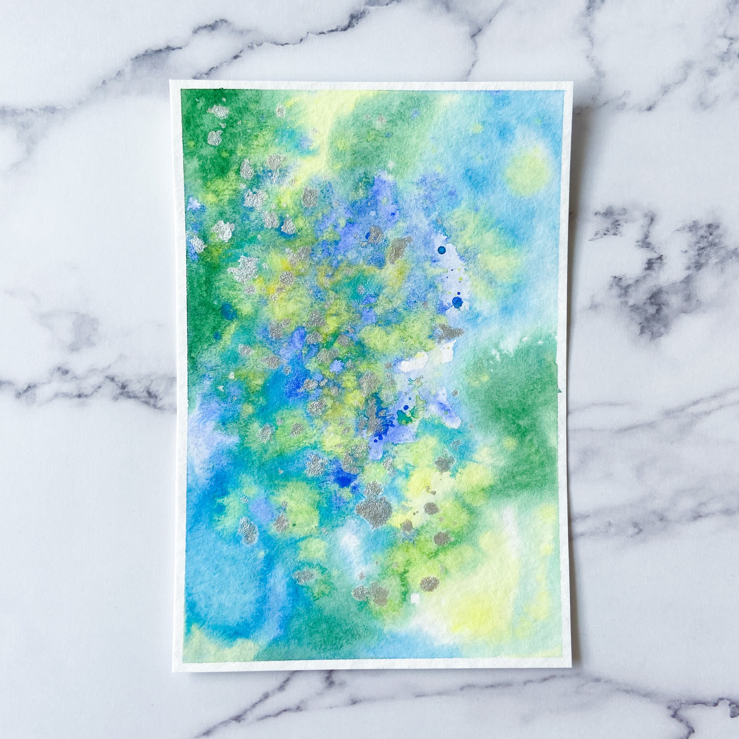ポストカードサイズのトルション紙に、アクリル絵具で描きました。