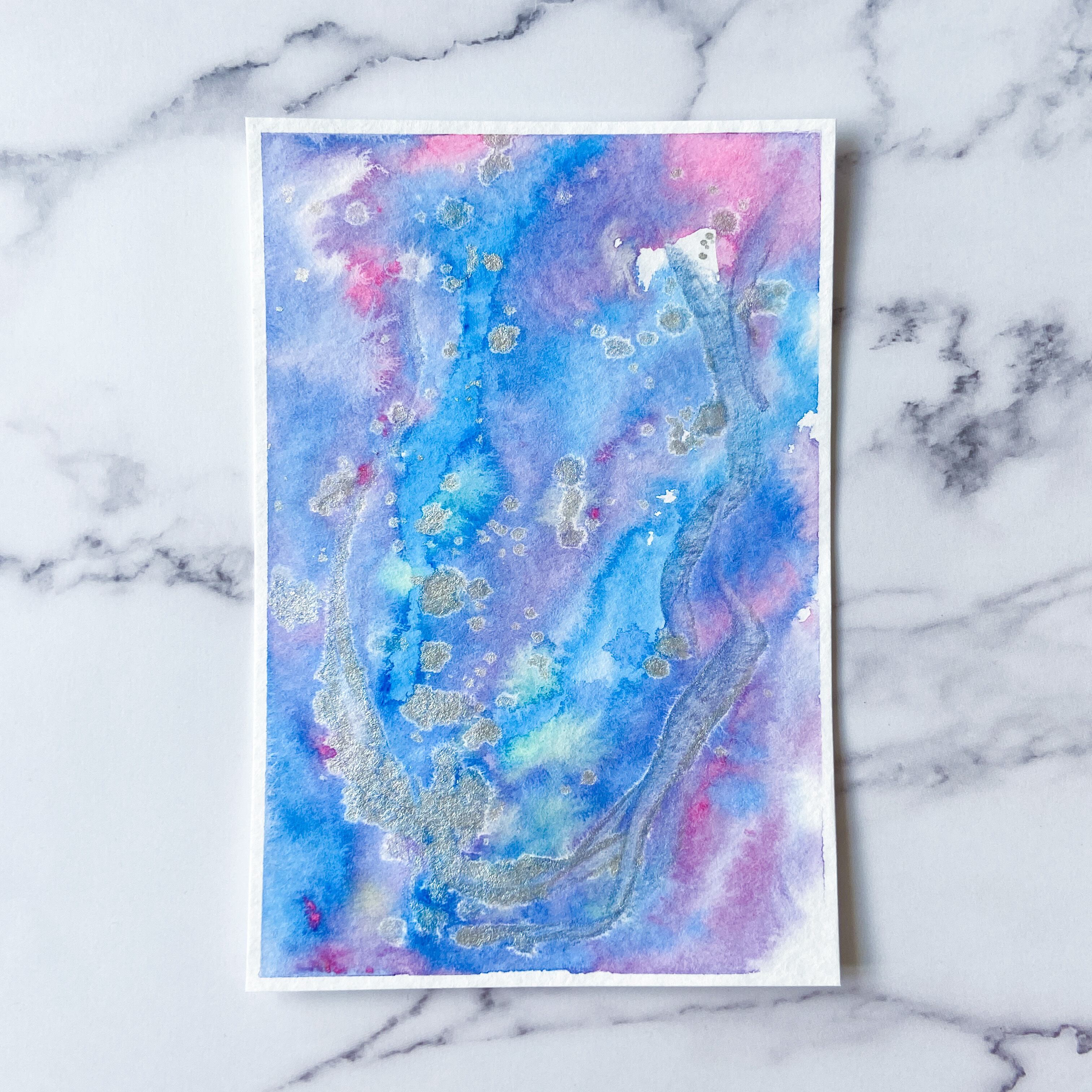 ポストカードサイズのトルション紙に、アクリル絵具で描きました。