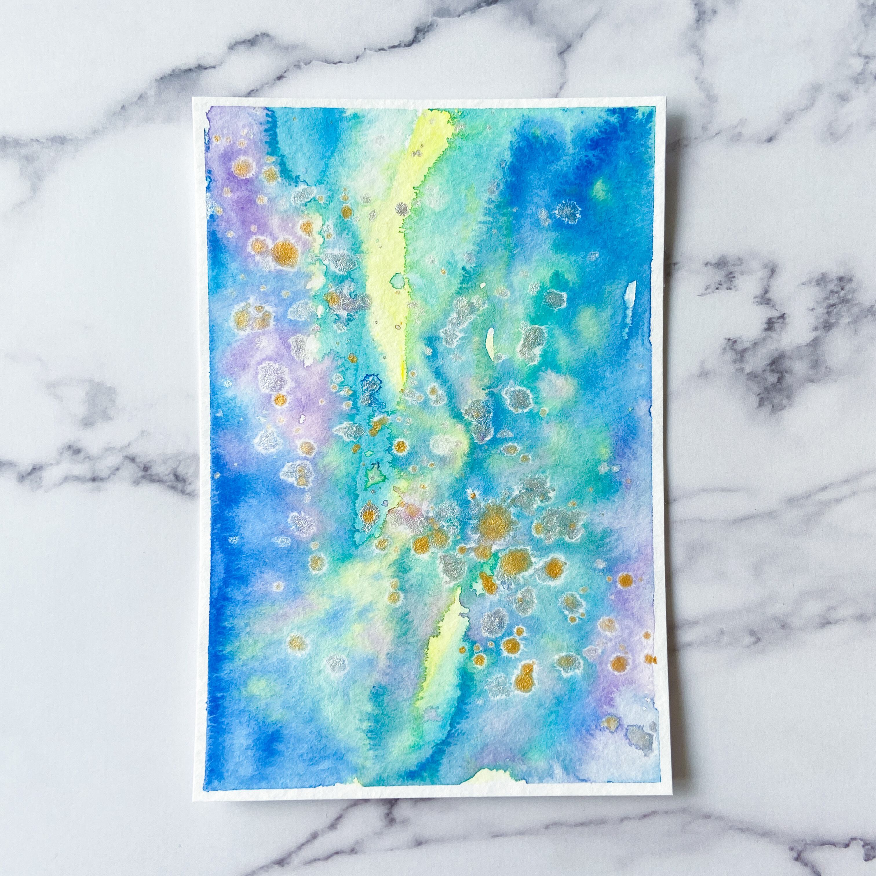 ポストカードサイズのトルション紙に、アクリル絵具で描きました。