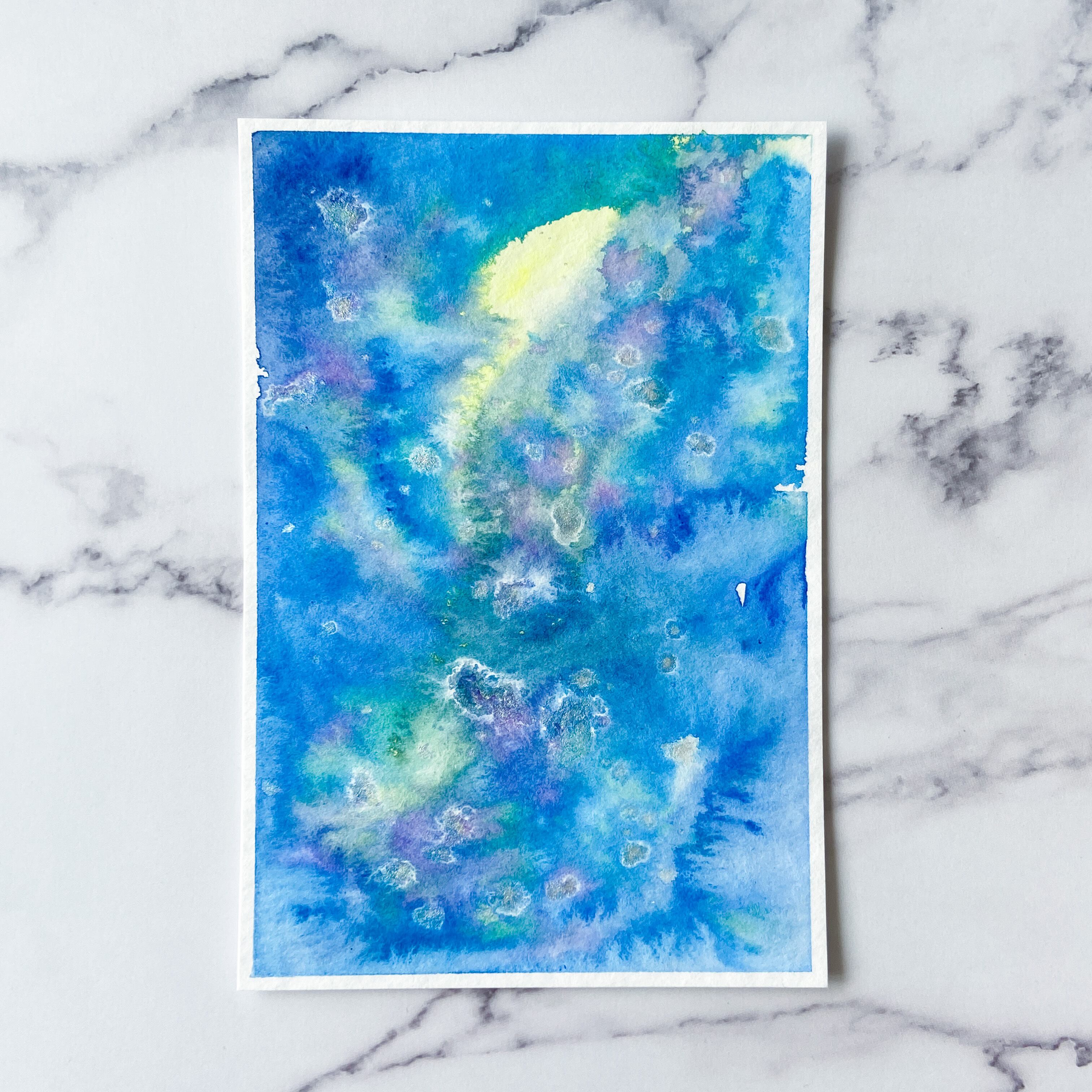 ポストカードサイズのトルション紙に、アクリル絵具で描きました。