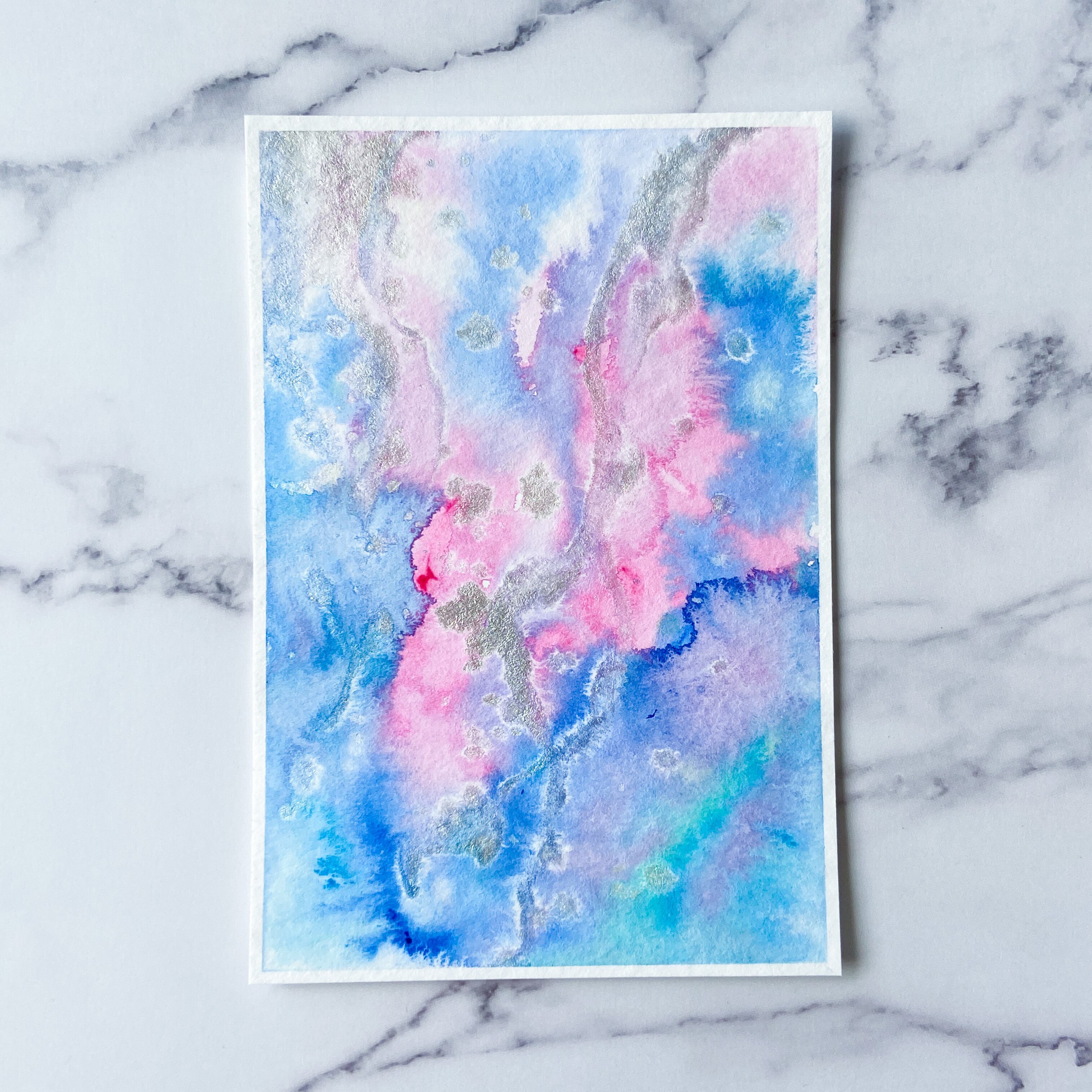 ポストカードサイズのトルション紙に、アクリル絵具で描きました。