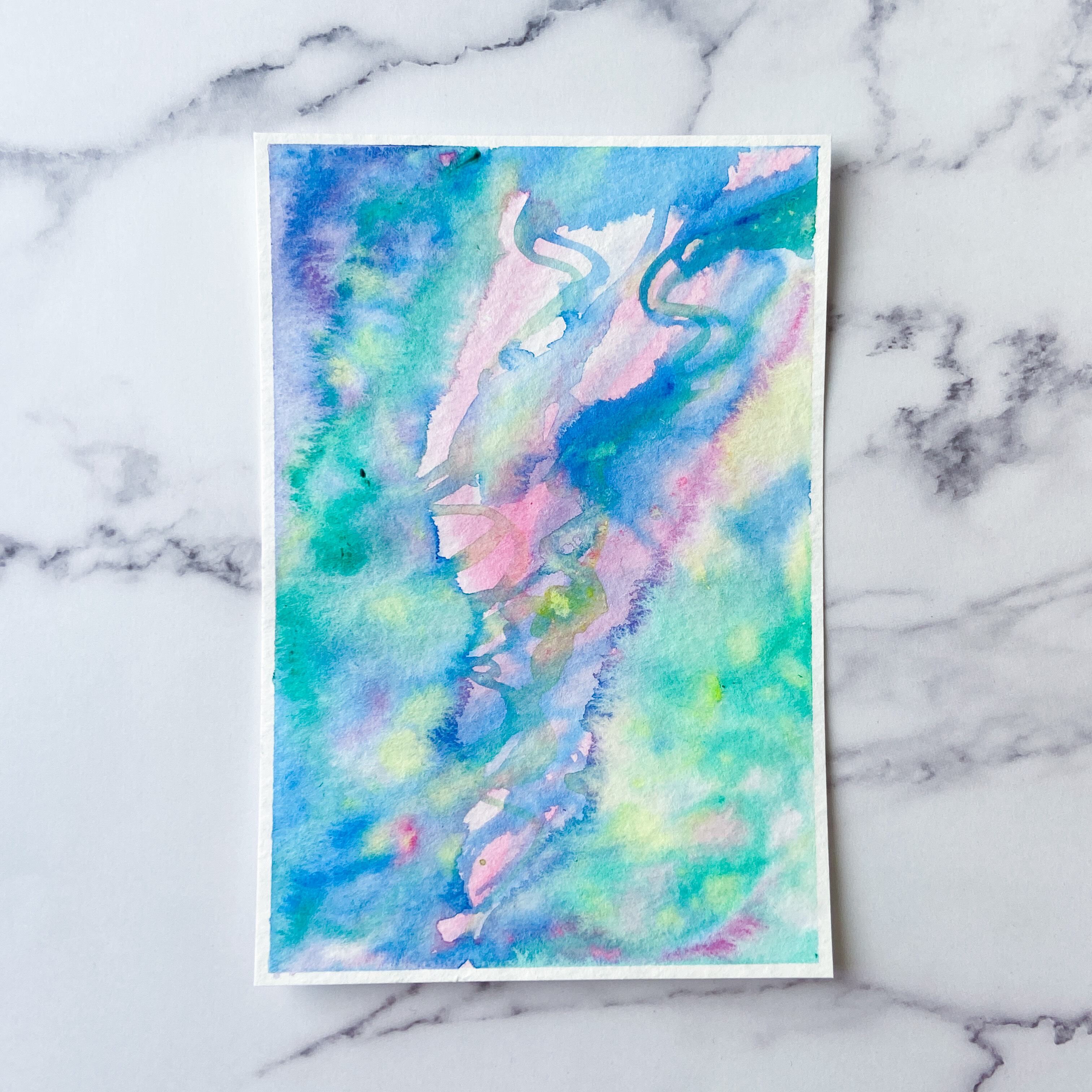 ポストカードサイズのトルション紙に、アクリル絵具で描きました。