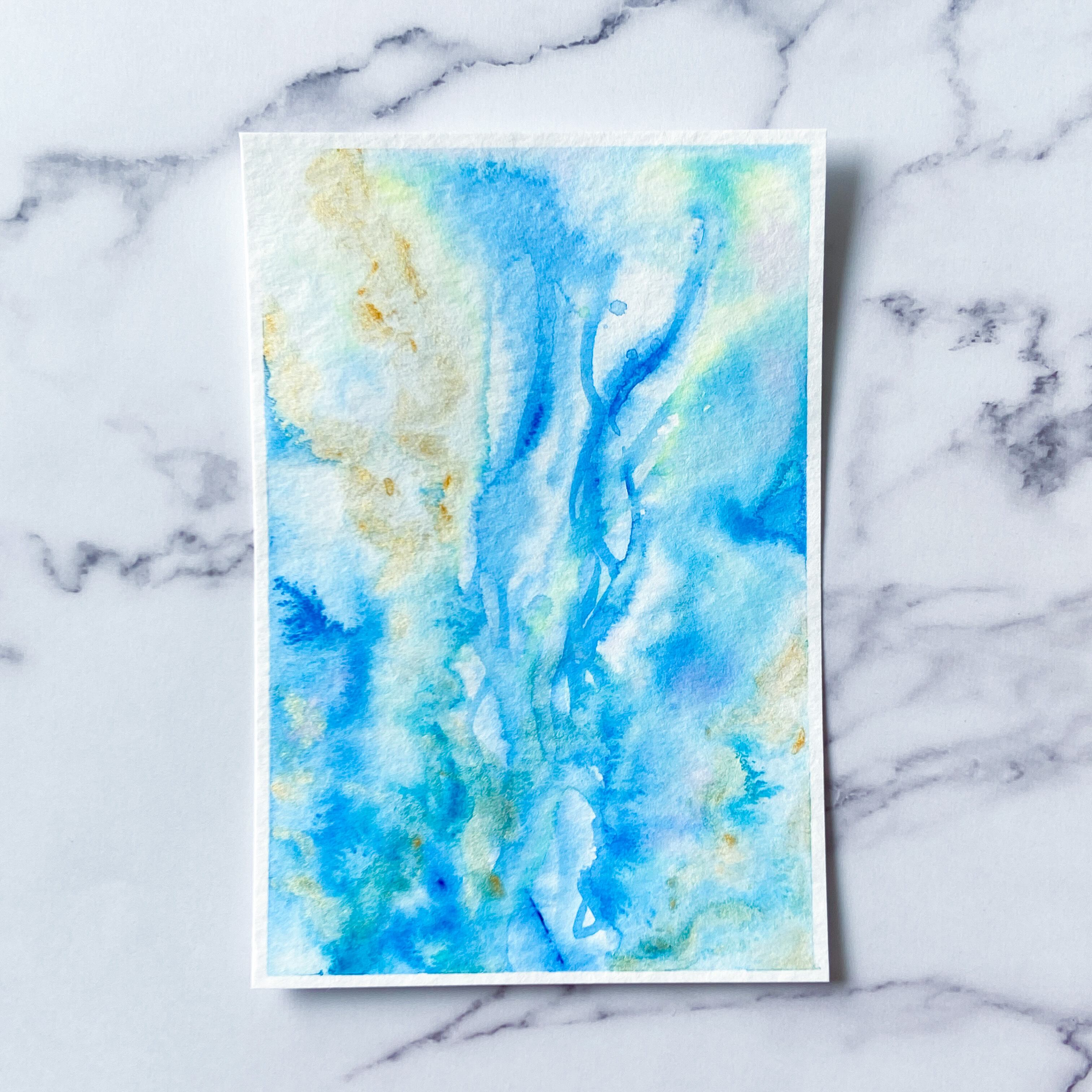 ポストカードサイズのトルション紙に、アクリル絵具で描きました。