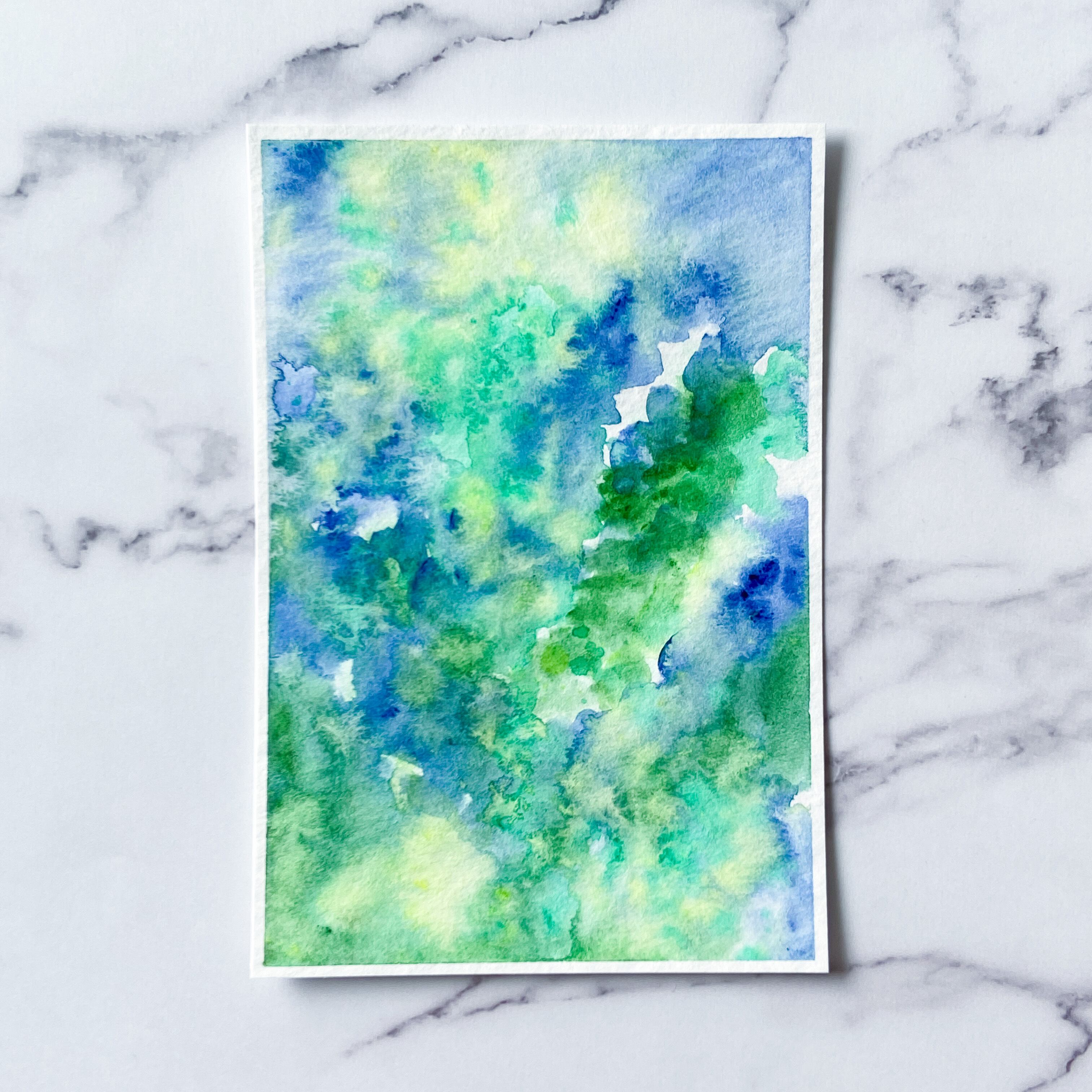 ポストカードサイズのトルション紙に、アクリル絵具で描きました。