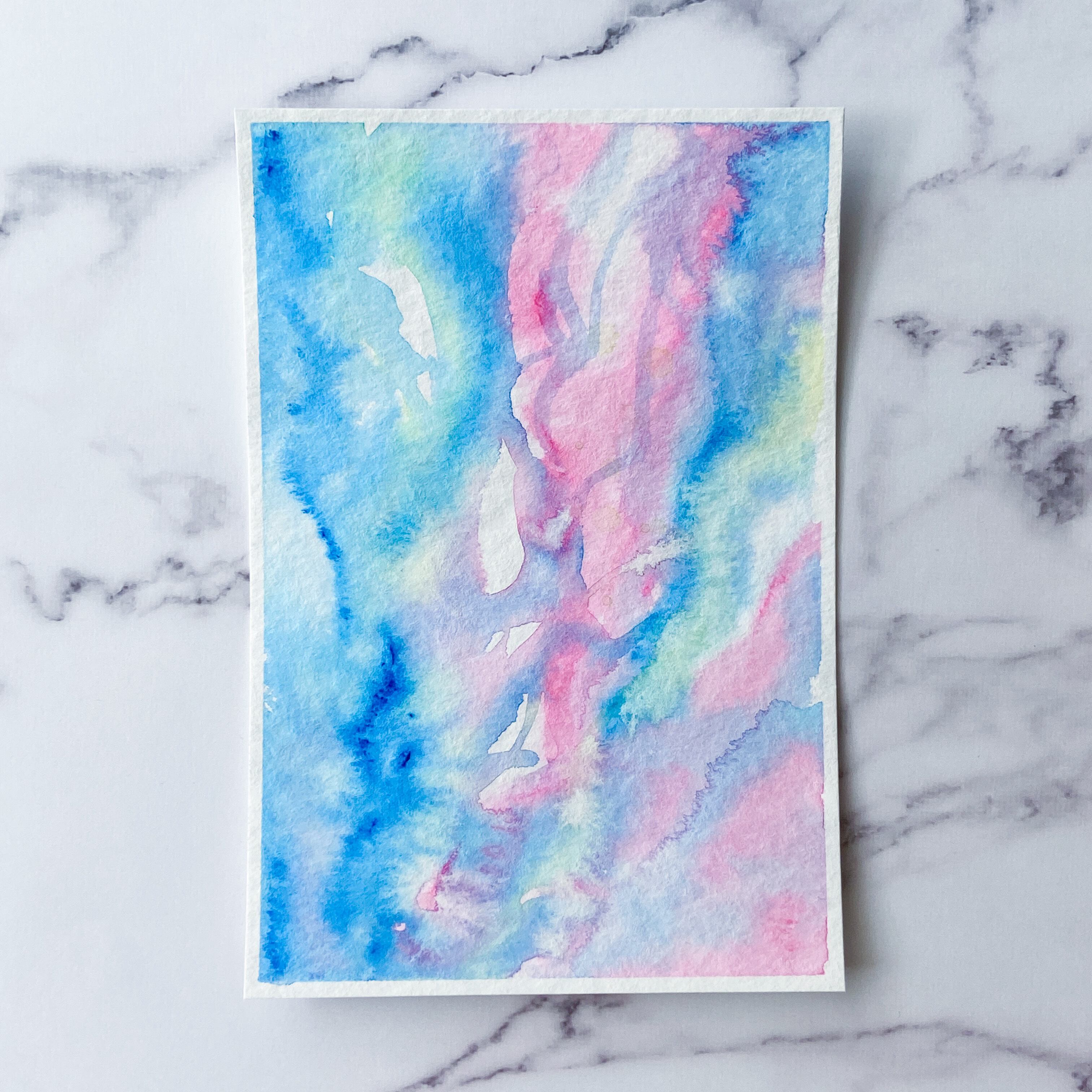 ポストカードサイズのトルション紙に、アクリル絵具で描きました。