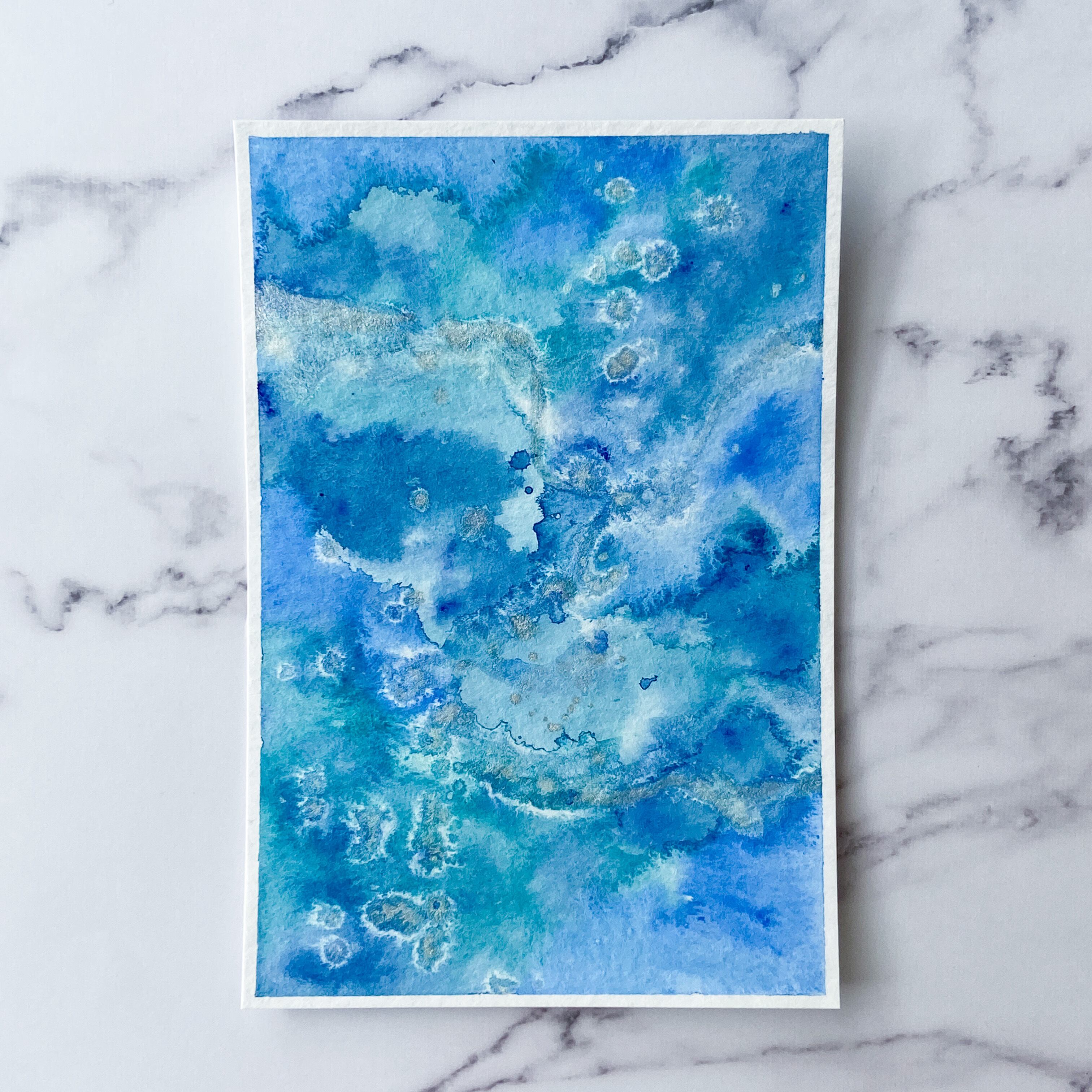 ポストカードサイズのトルション紙に、アクリル絵具で描きました。