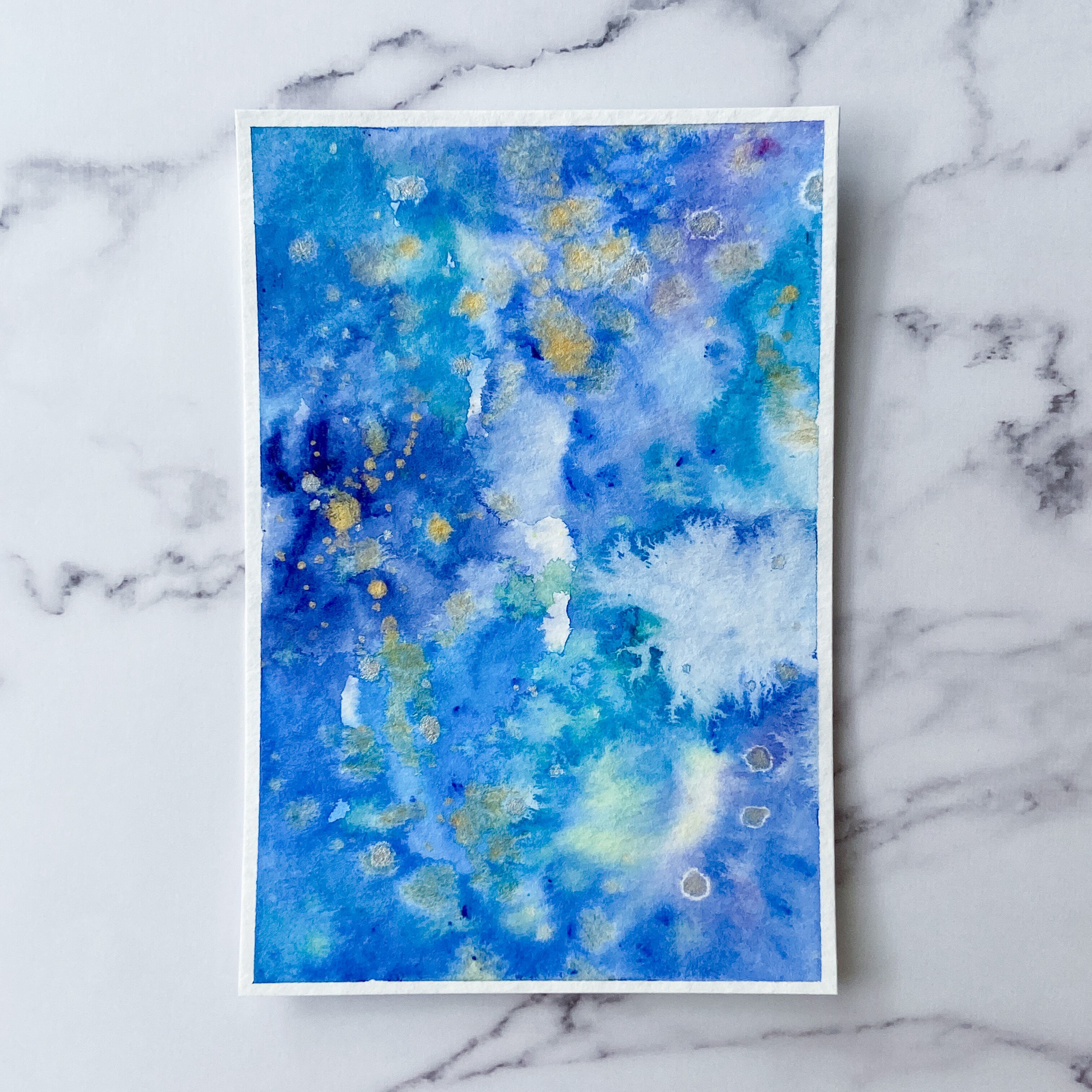 ポストカードサイズのトルション紙に、アクリル絵具で描きました。
