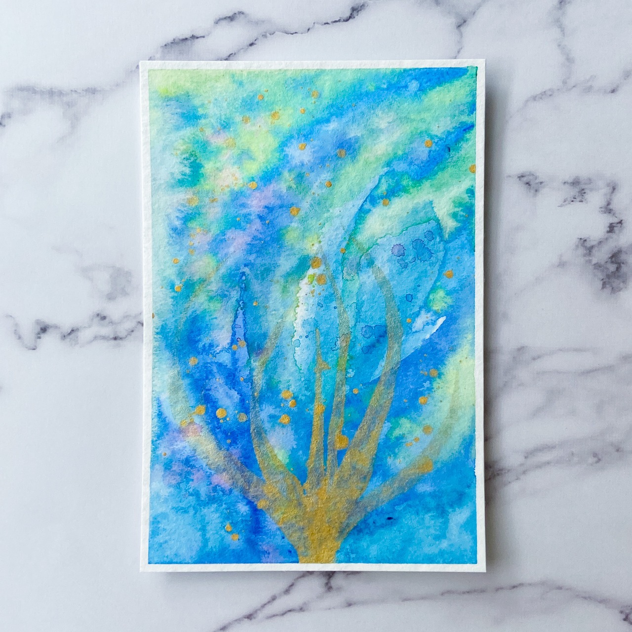ポストカードサイズのトルション紙に、アクリル絵具で描きました。