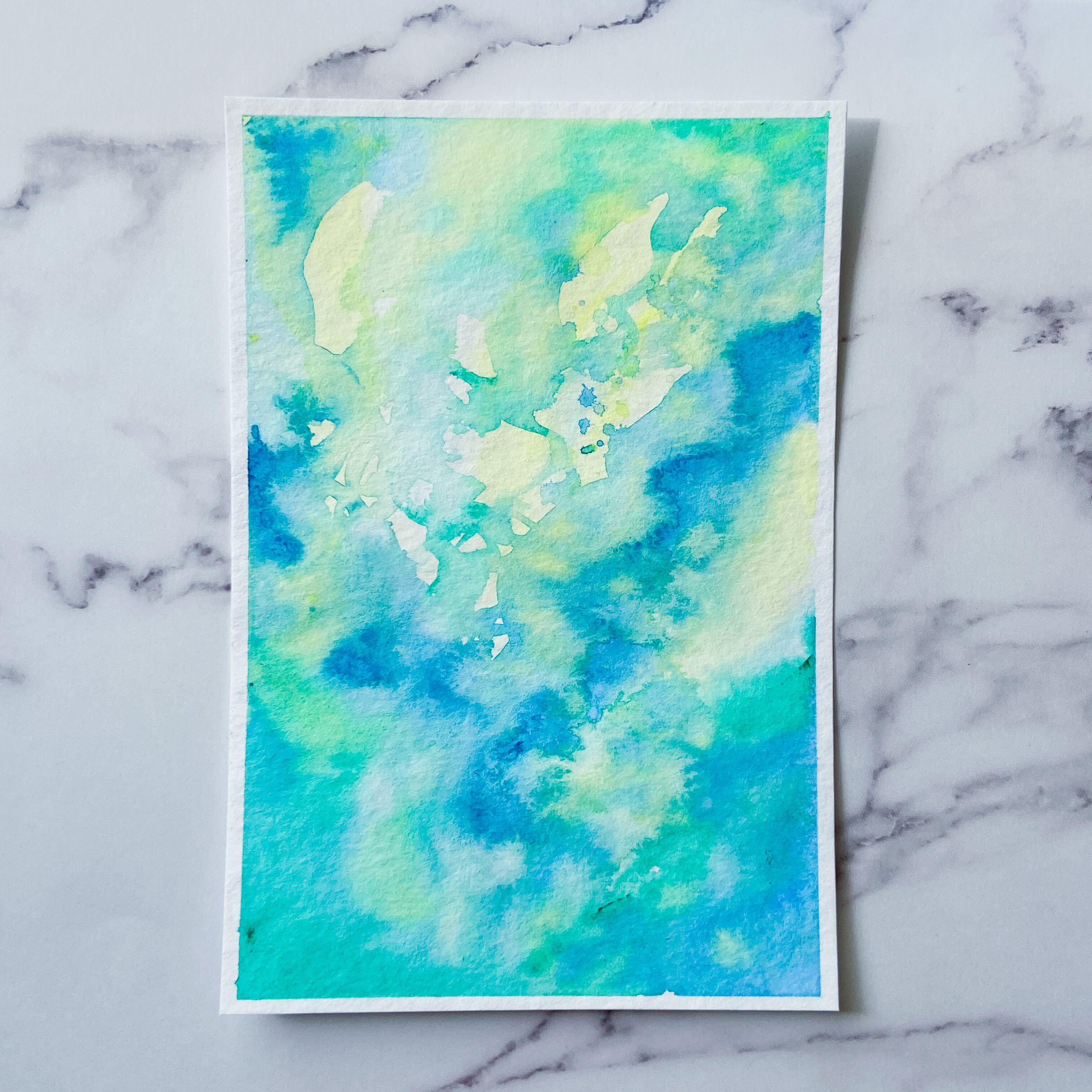 ポストカードサイズのトルション紙に、アクリル絵具で描きました。