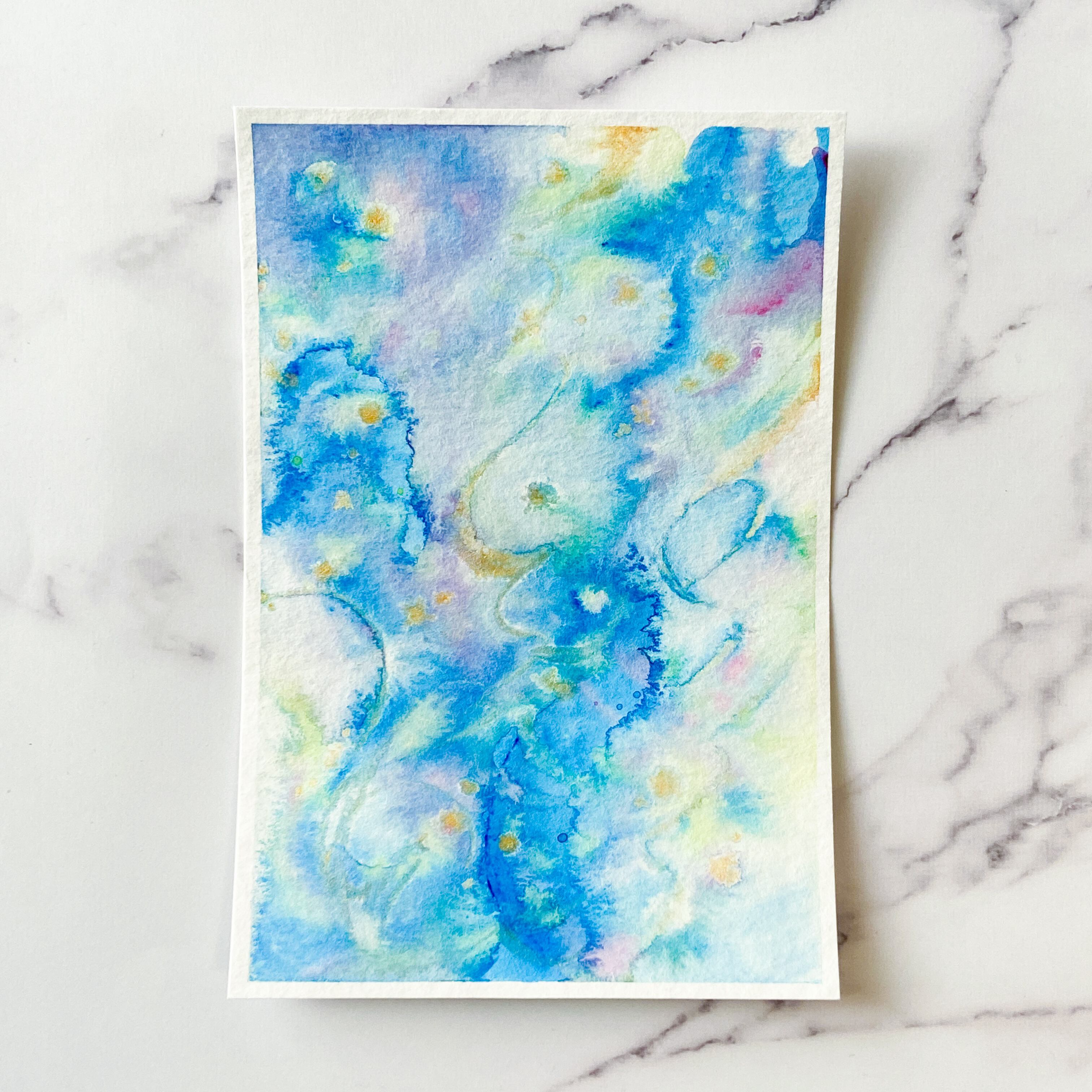 ポストカードサイズのトルション紙に、アクリル絵具で描きました。