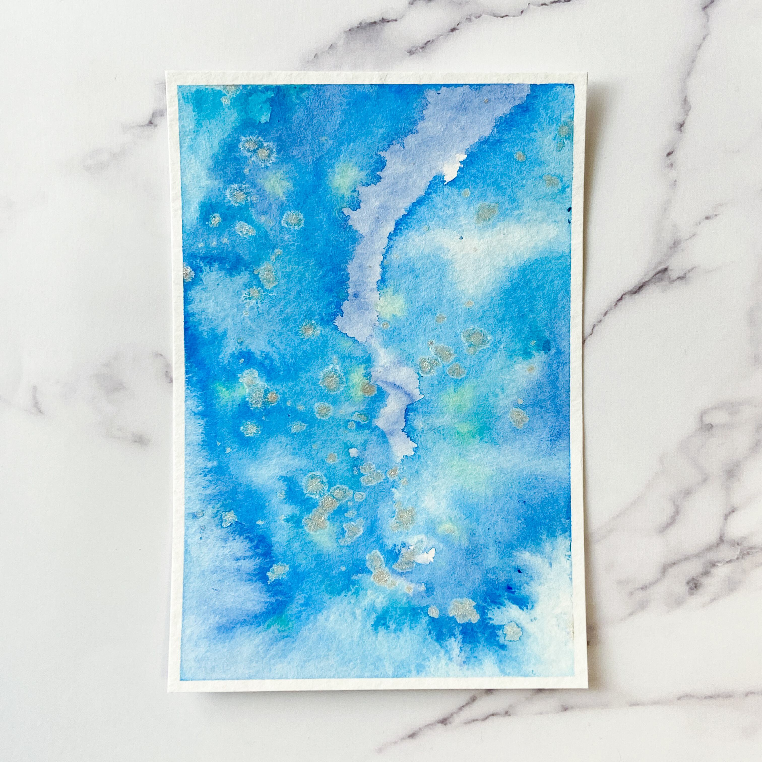 ポストカードサイズのトルション紙に、アクリル絵具で描きました。