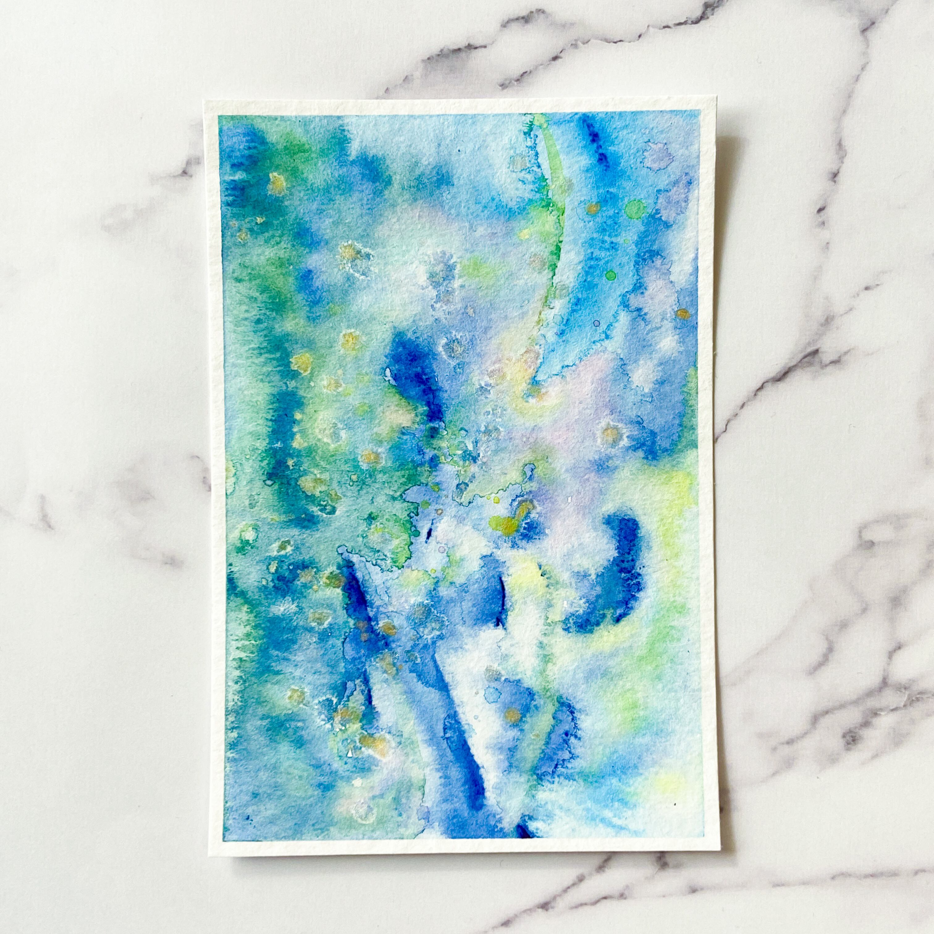 ポストカードサイズのトルション紙に、アクリル絵具で描きました。