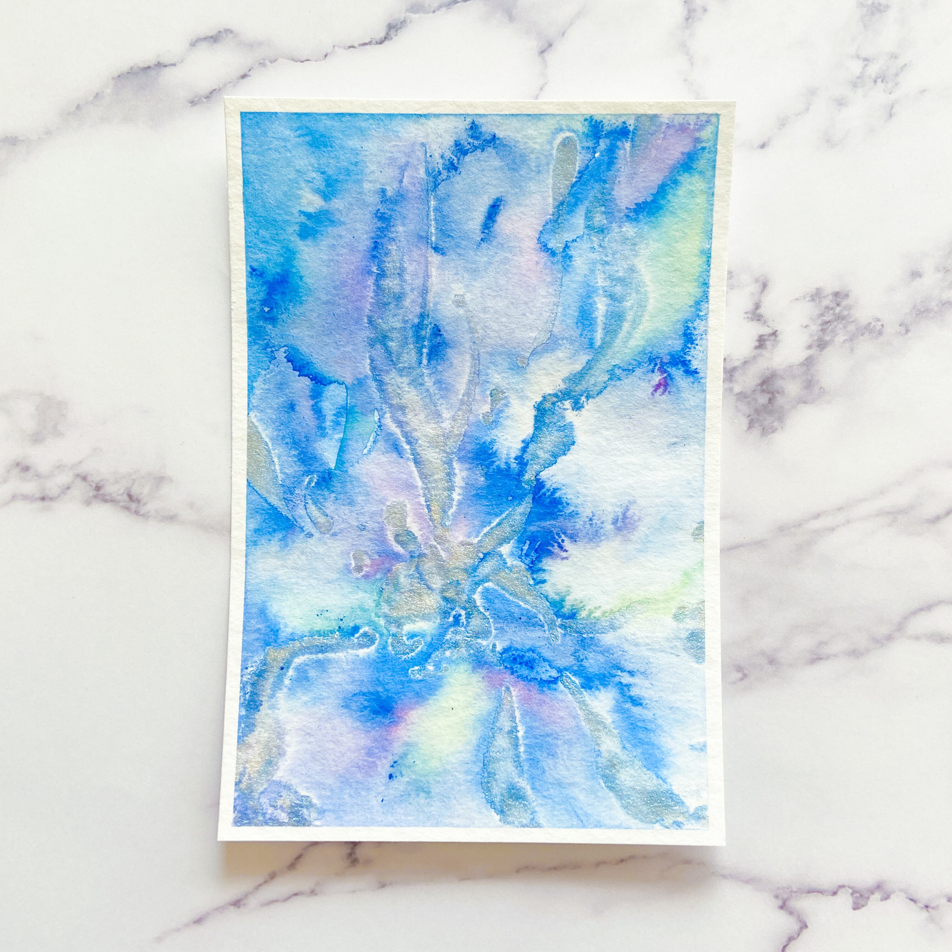 ポストカードサイズのトルション紙に、アクリル絵具で描きました。