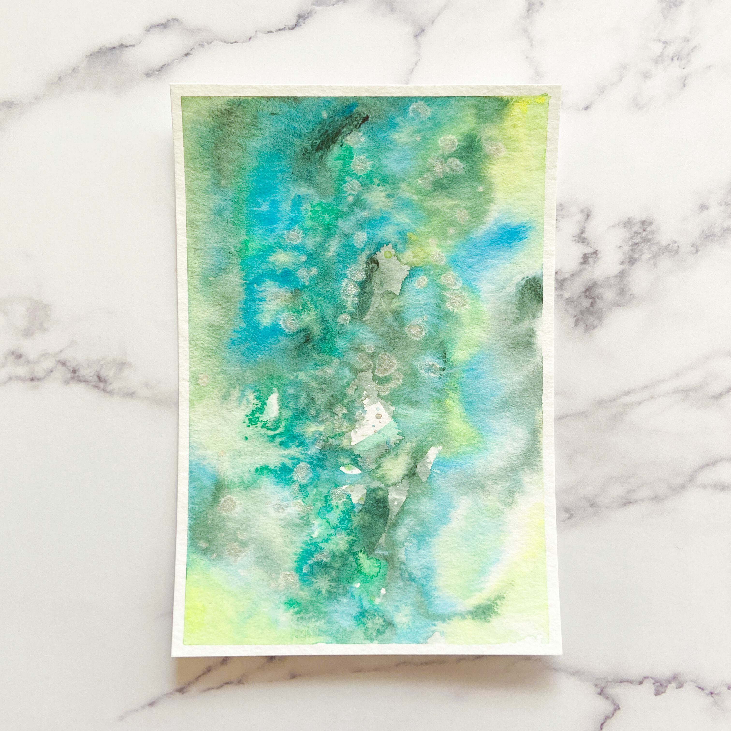ポストカードサイズのトルション紙に、アクリル絵具で描きました。