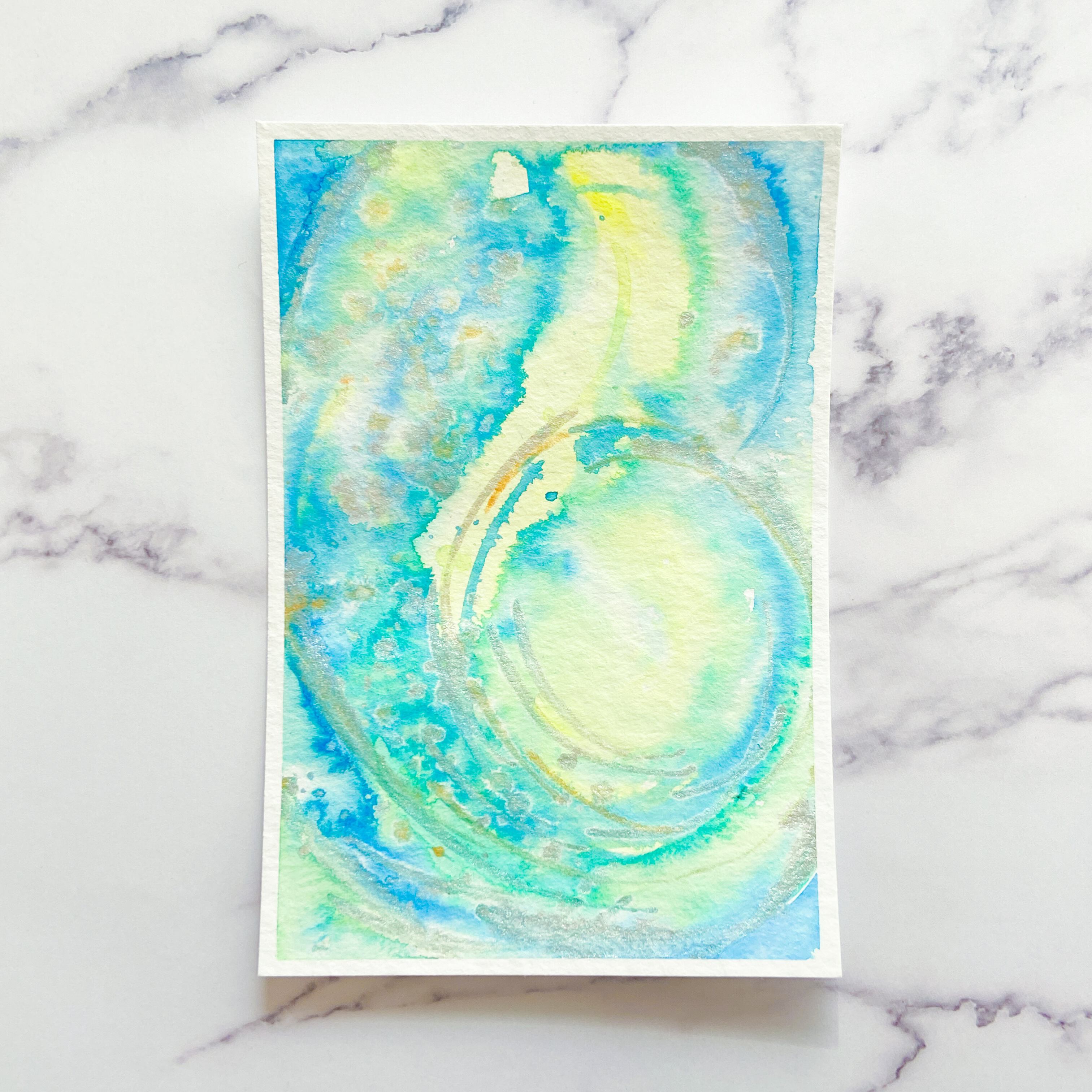 ポストカードサイズのトルション紙に、アクリル絵具で描きました。