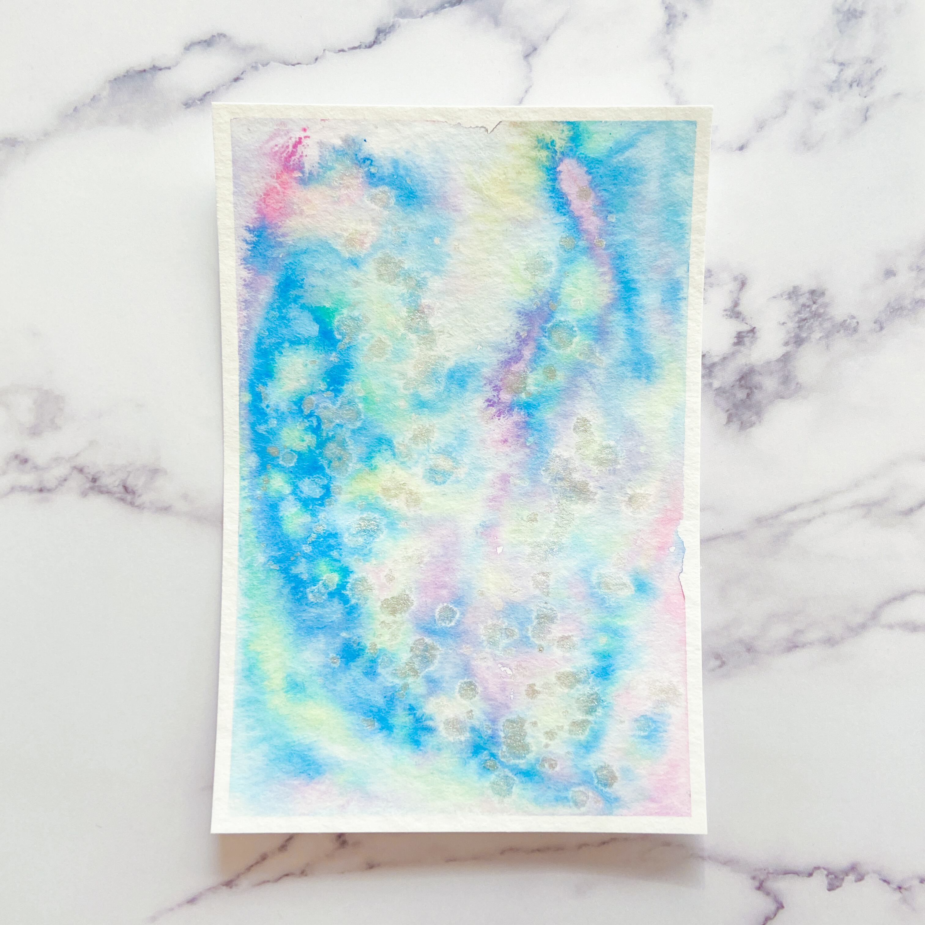 ポストカードサイズのトルション紙に、アクリル絵具で描きました。