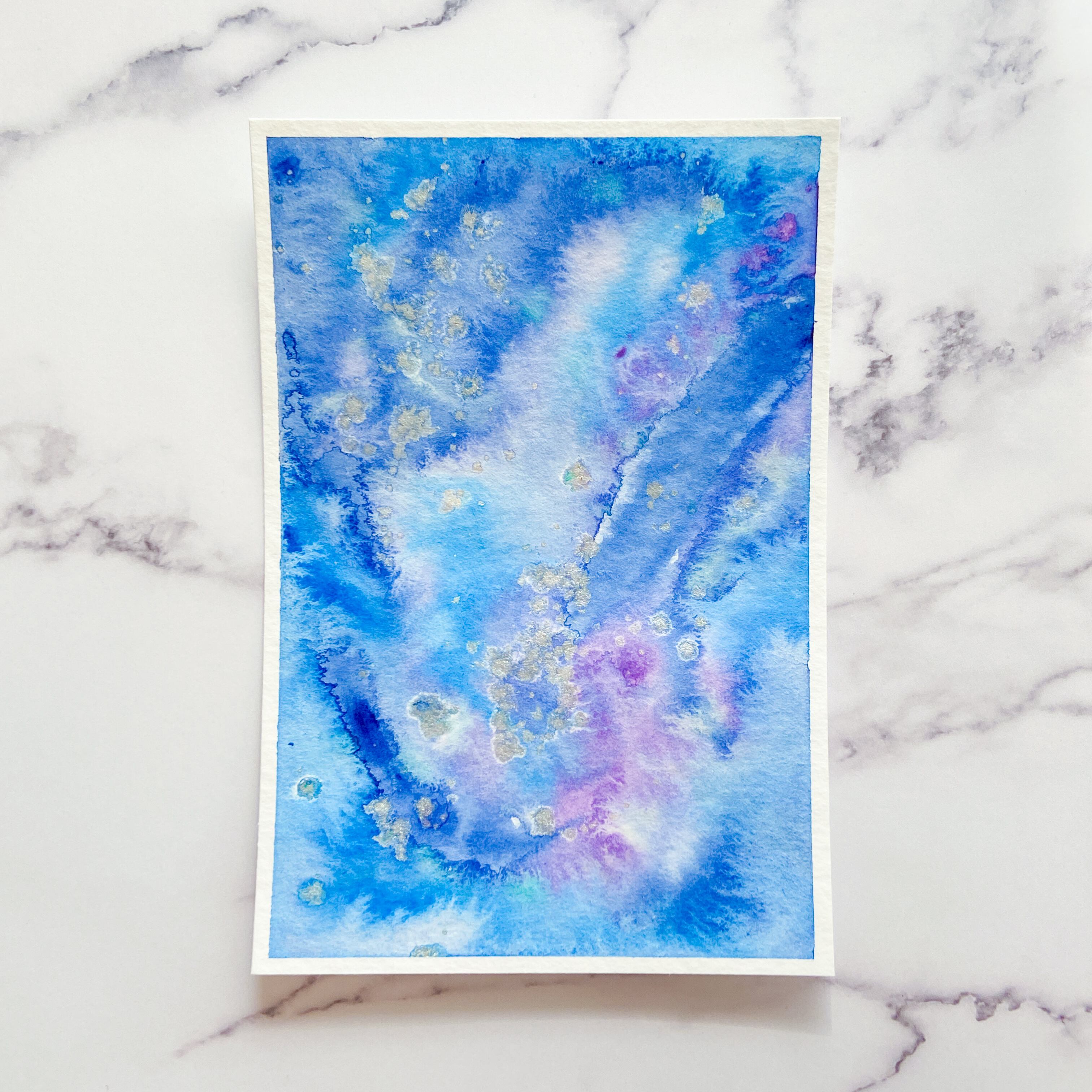 ポストカードサイズのトルション紙に、アクリル絵具で描きました。