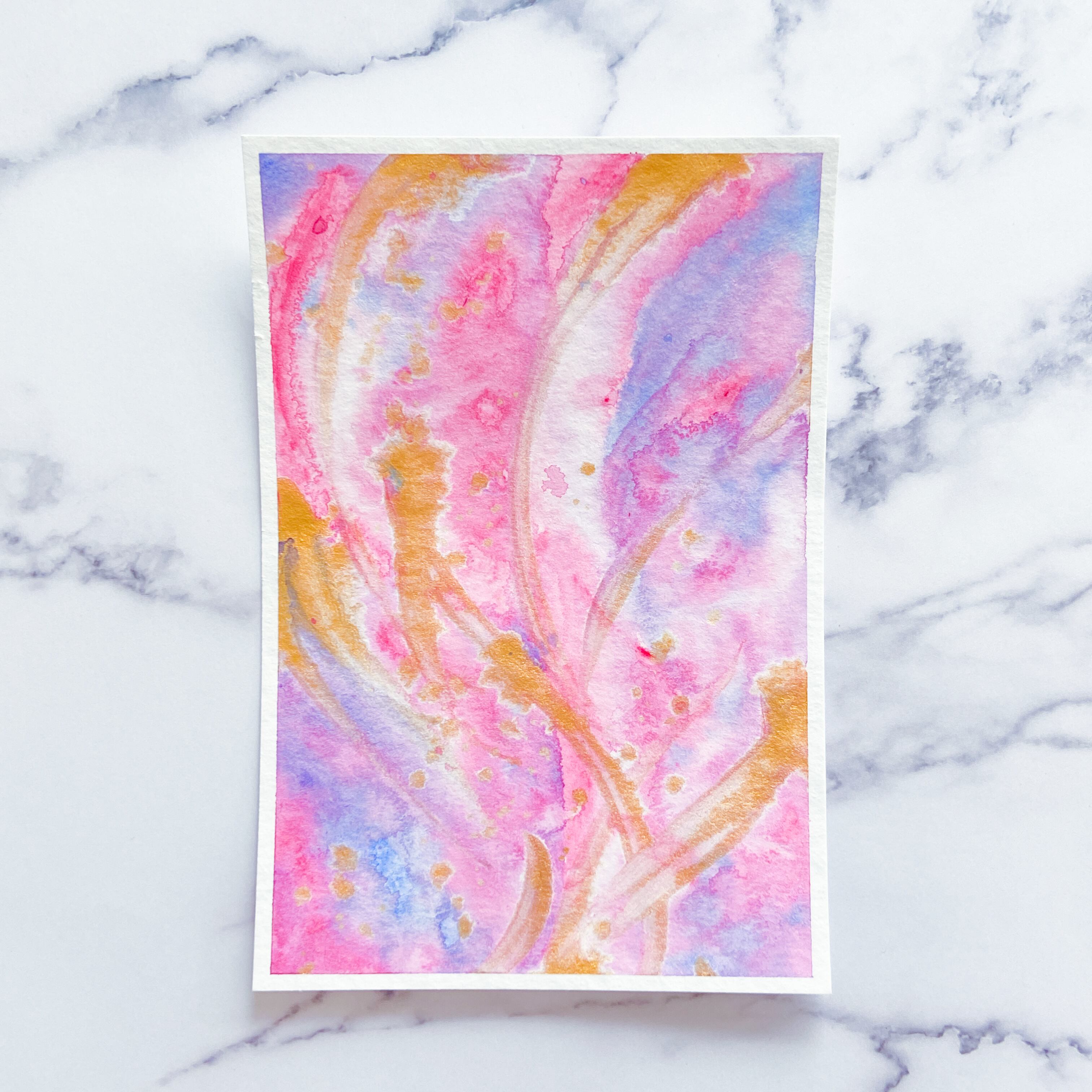 ポストカードサイズのトルション紙に、アクリル絵具で描きました。