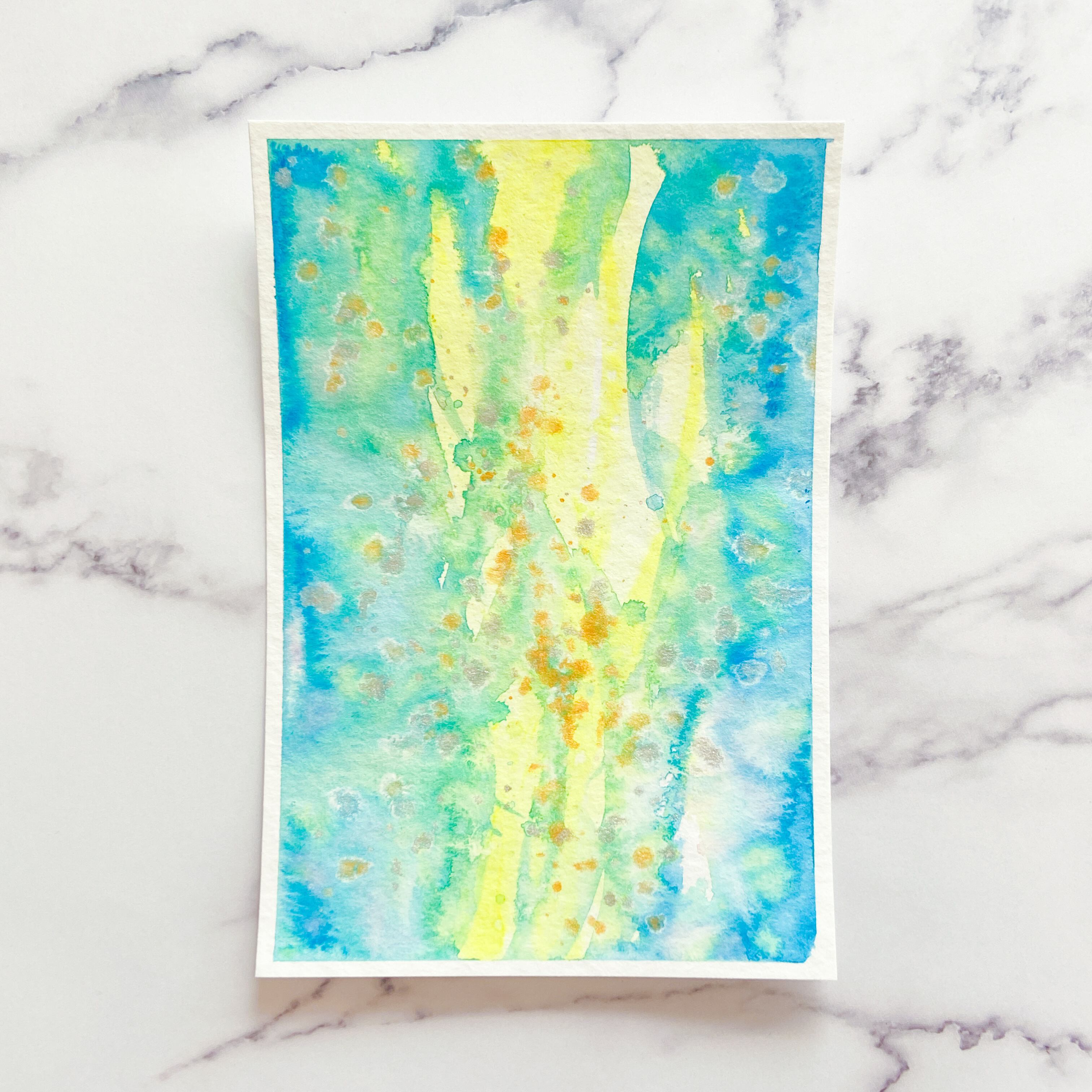 ポストカードサイズのトルション紙に、アクリル絵具で描きました。