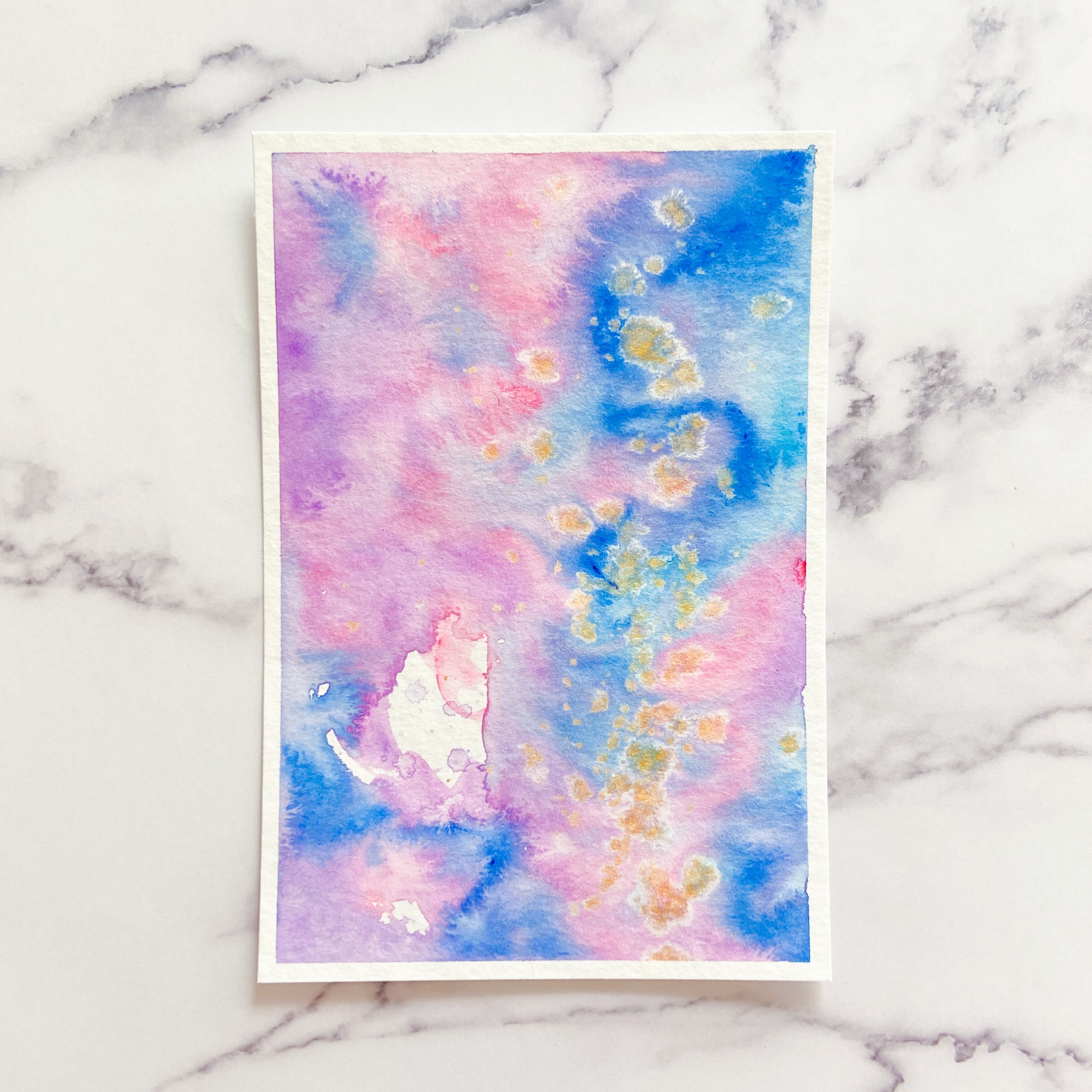 ポストカードサイズのトルション紙に、アクリル絵具で描きました。