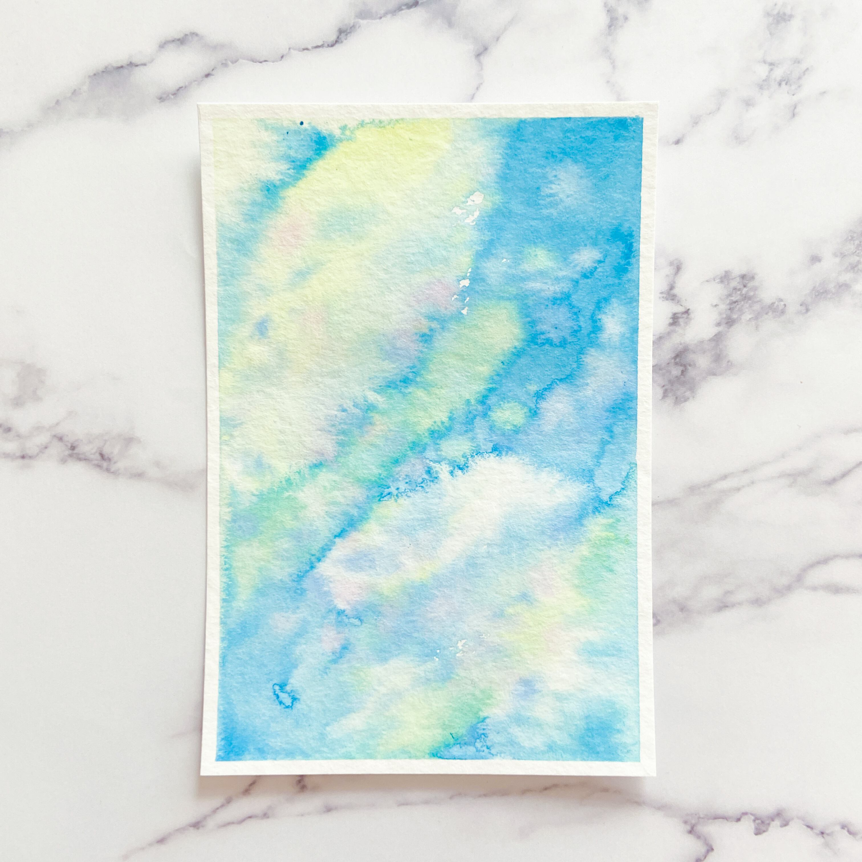 ポストカードサイズのトルション紙に、アクリル絵具で描きました。