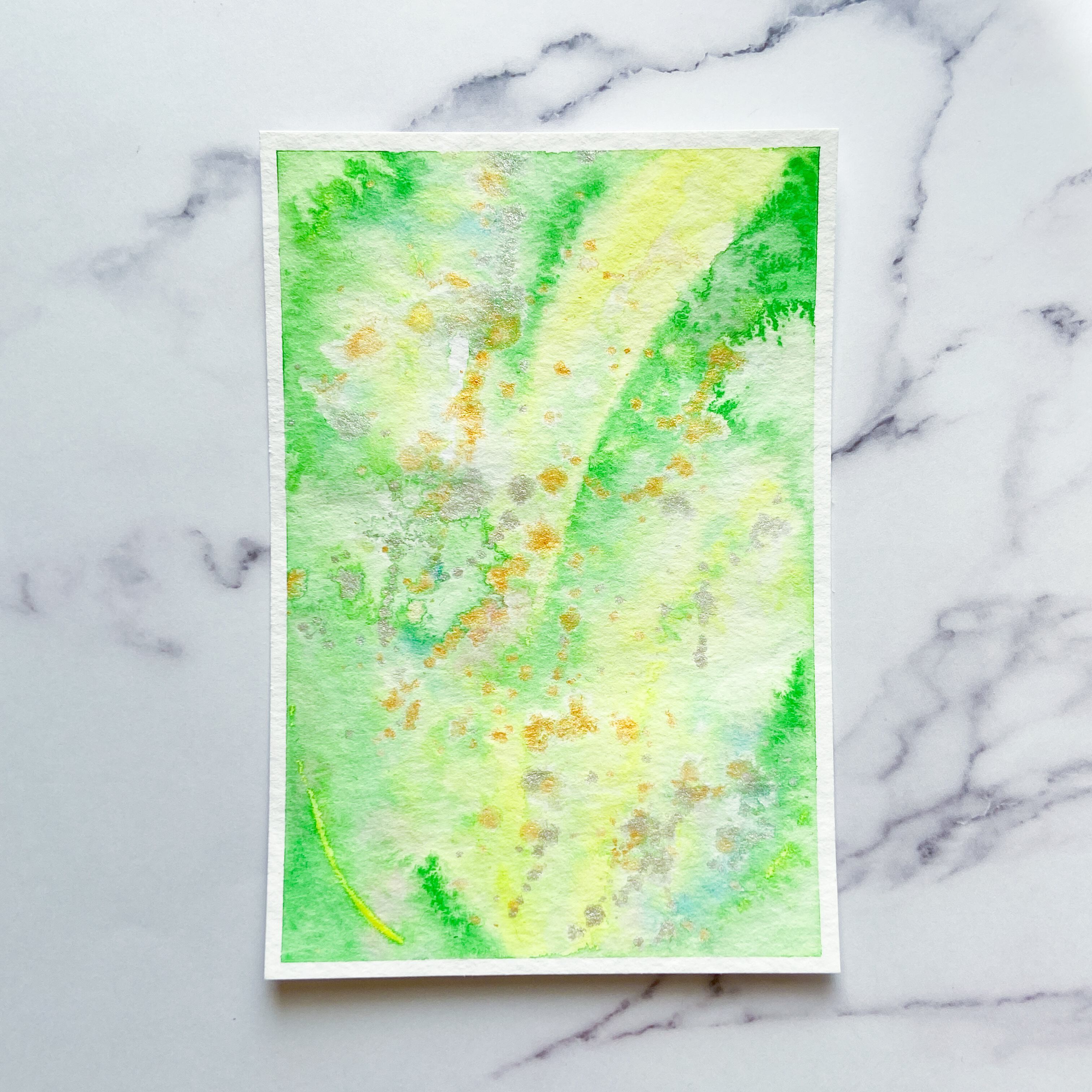 ポストカードサイズのトルション紙に、アクリル絵具で描きました。
