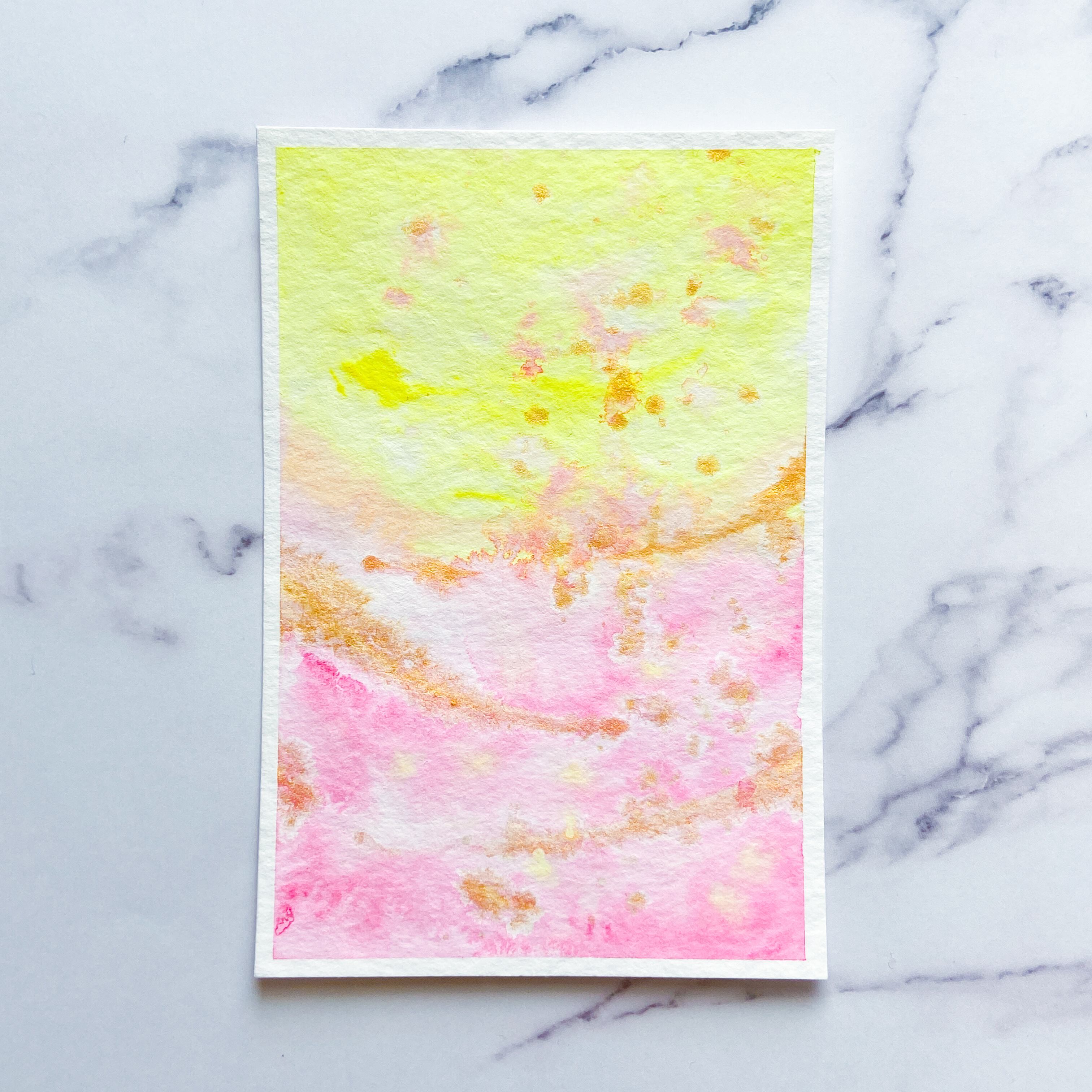 ポストカードサイズのトルション紙に、アクリル絵具で描きました。
