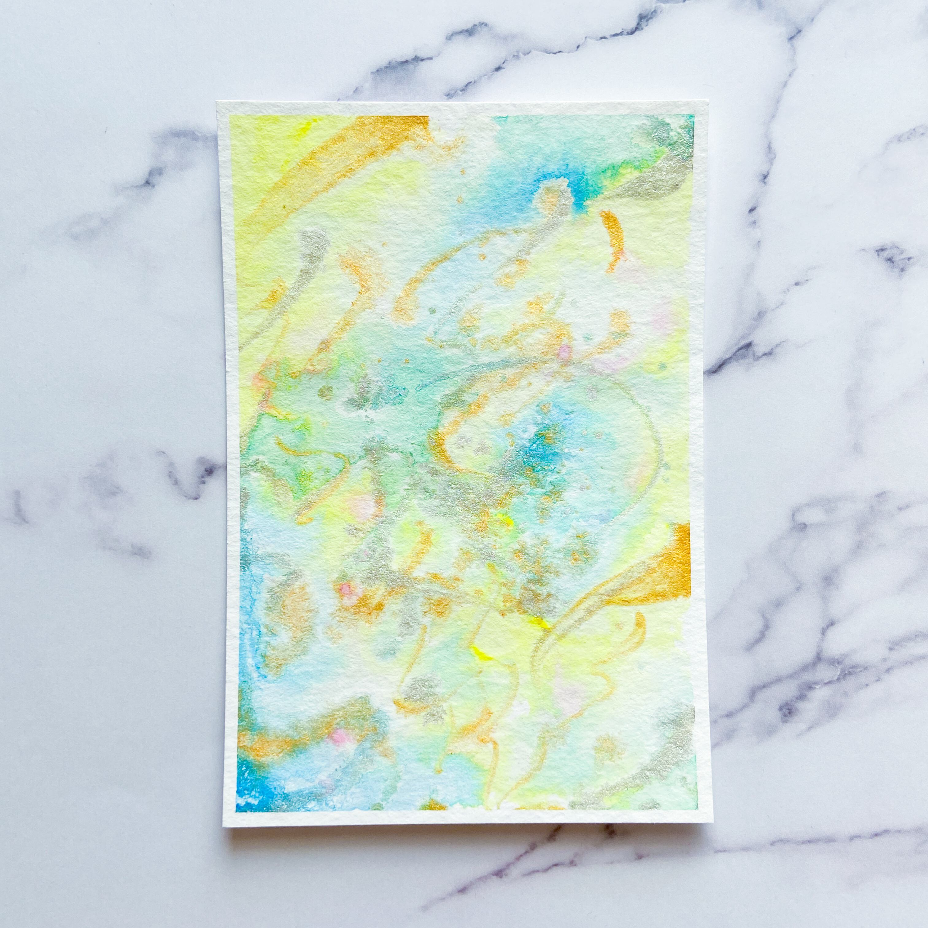 ポストカードサイズのトルション紙に、アクリル絵具で描きました。